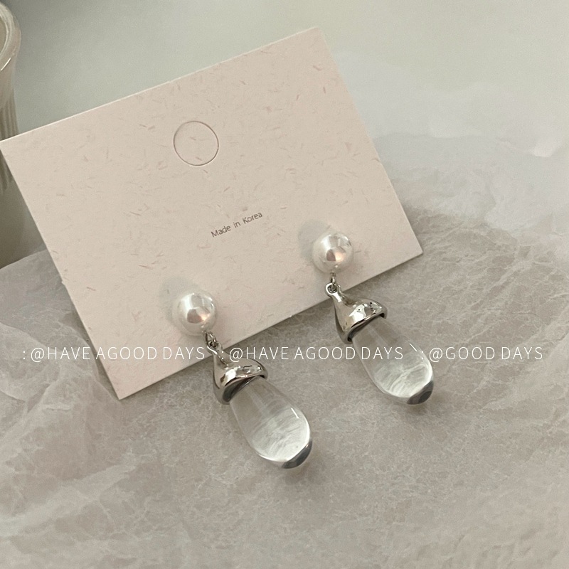 清冷感水滴耳环珍珠透明小众设计感高级轻奢气质耳饰个性925银针~