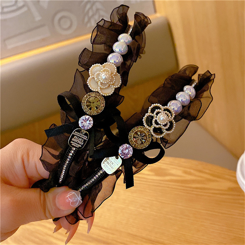 复古珍珠山茶花发箍新款韩版发饰气质女生巴洛克水钻头箍