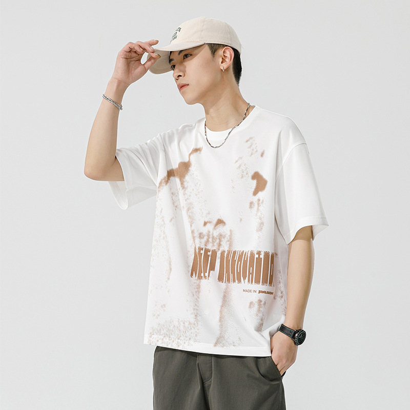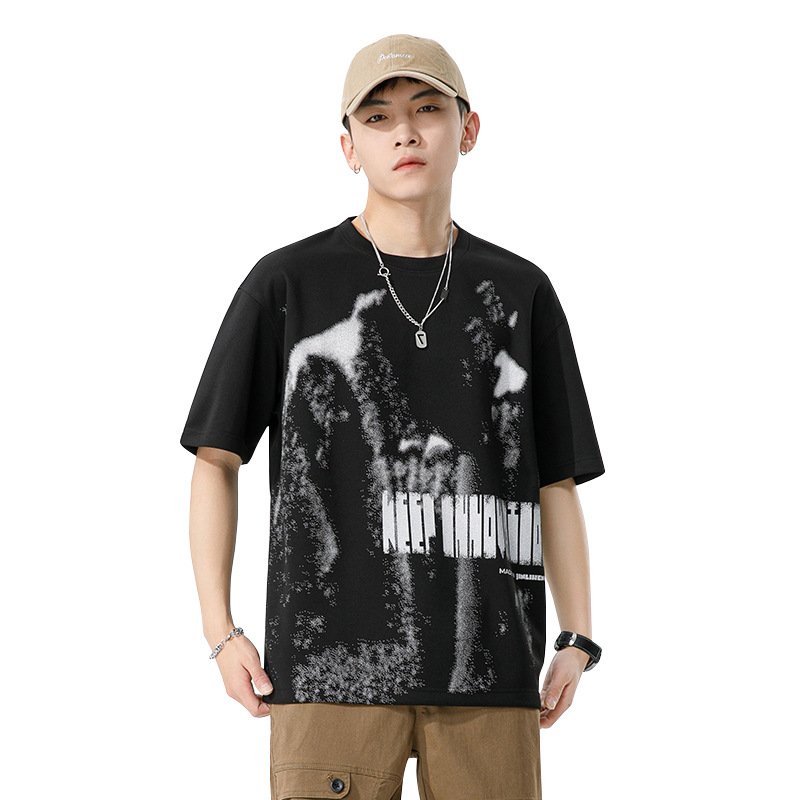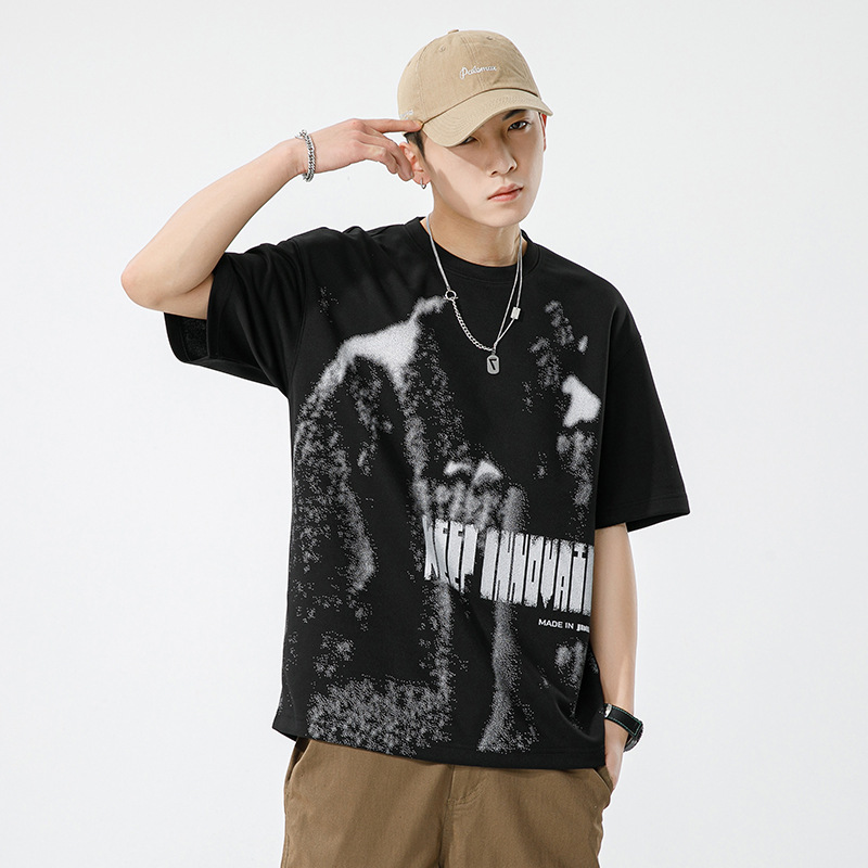 短袖t恤男夏季新款韩版潮流时尚涂鸦印花宽松圆领半袖打底衫