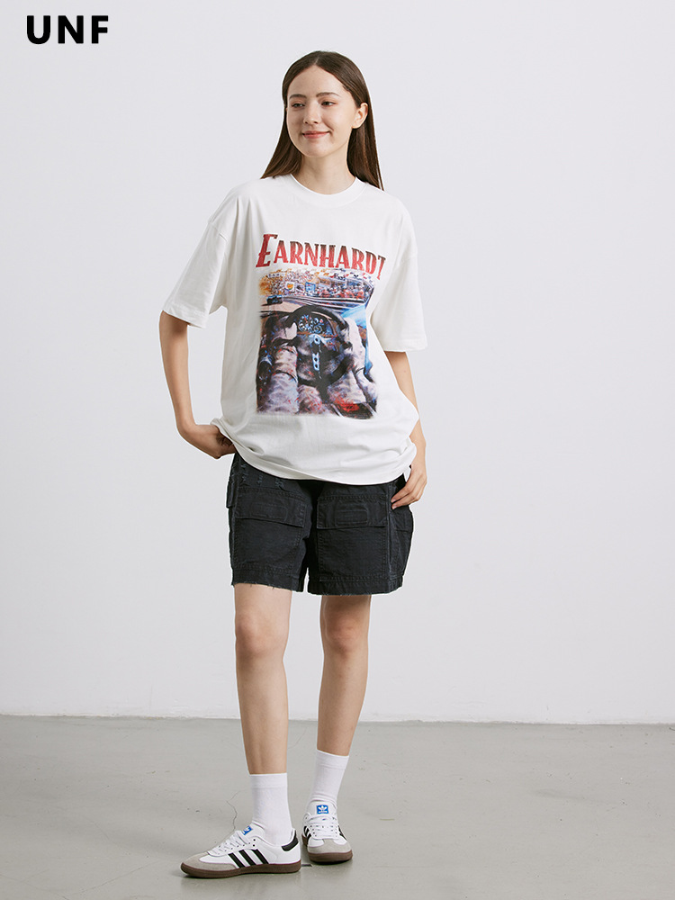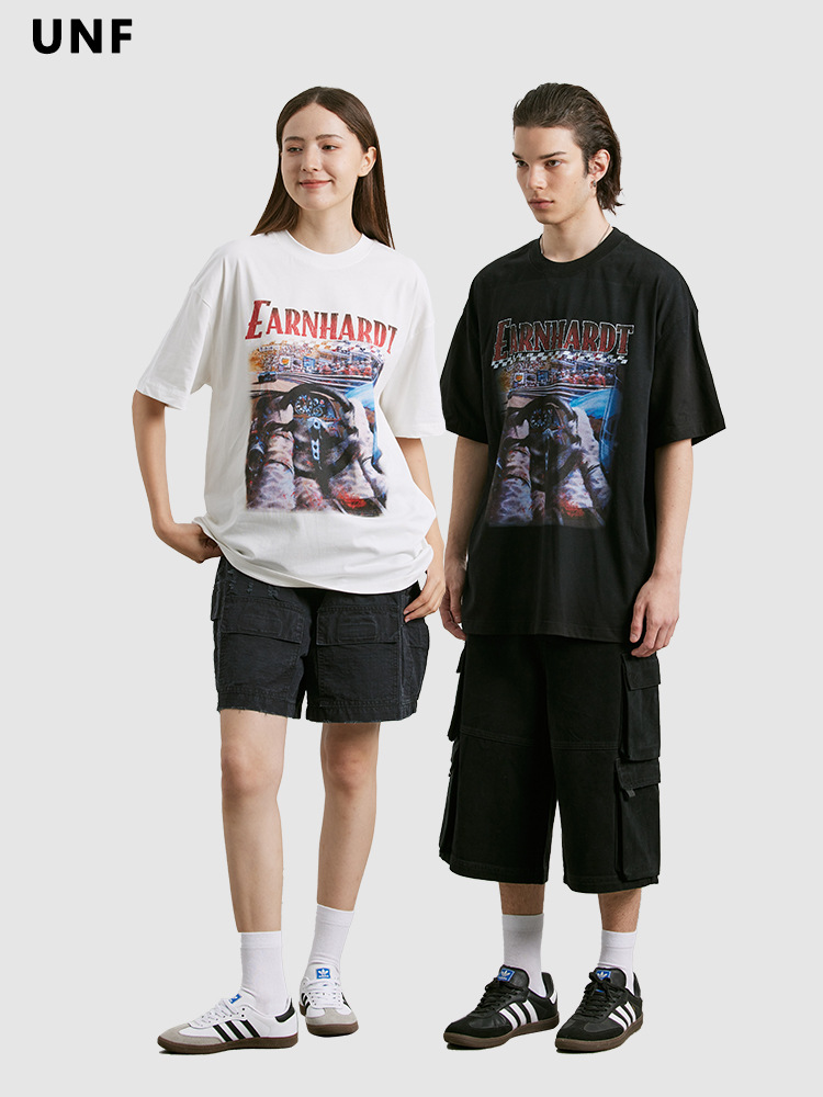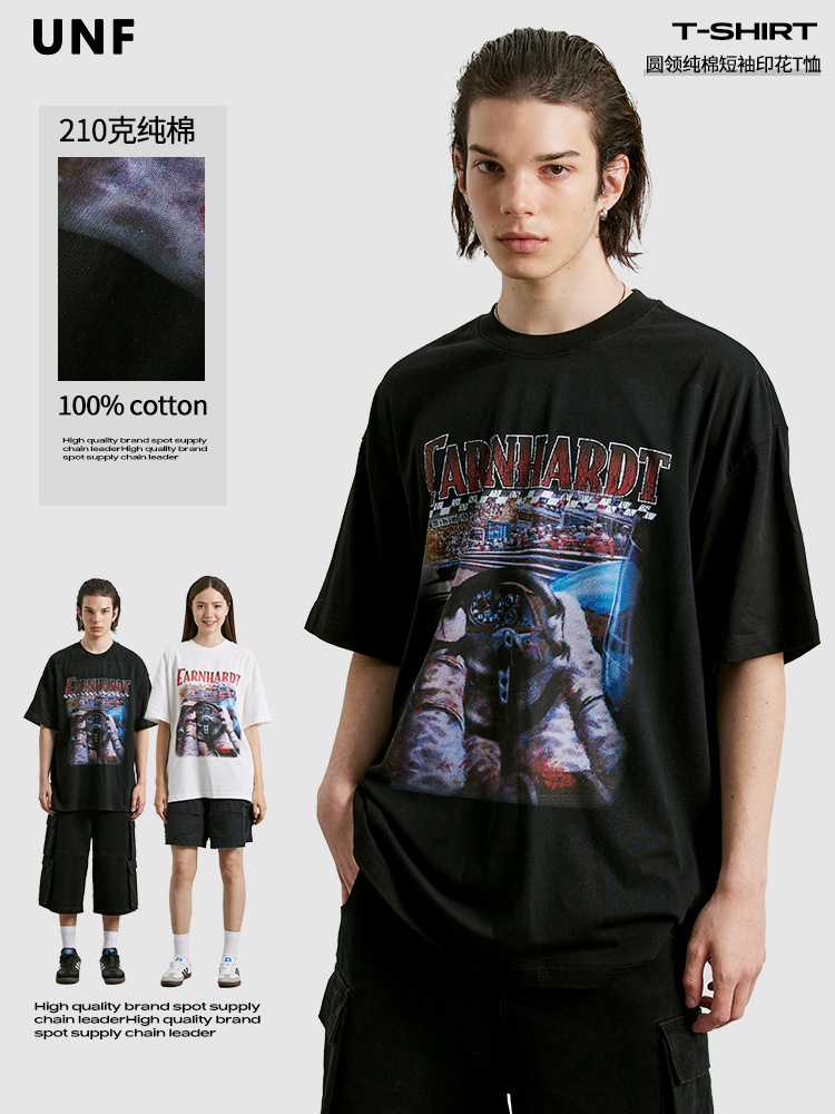UNF 210克纯棉圆领印花T恤潮春夏新品潮牌街头宽松短袖上衣男