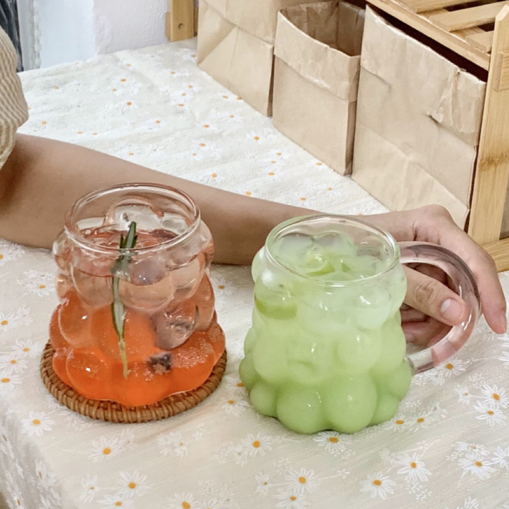 葡萄玻璃杯带把手ins风带把牛奶拿铁杯果汁杯水杯早餐拿铁咖啡杯