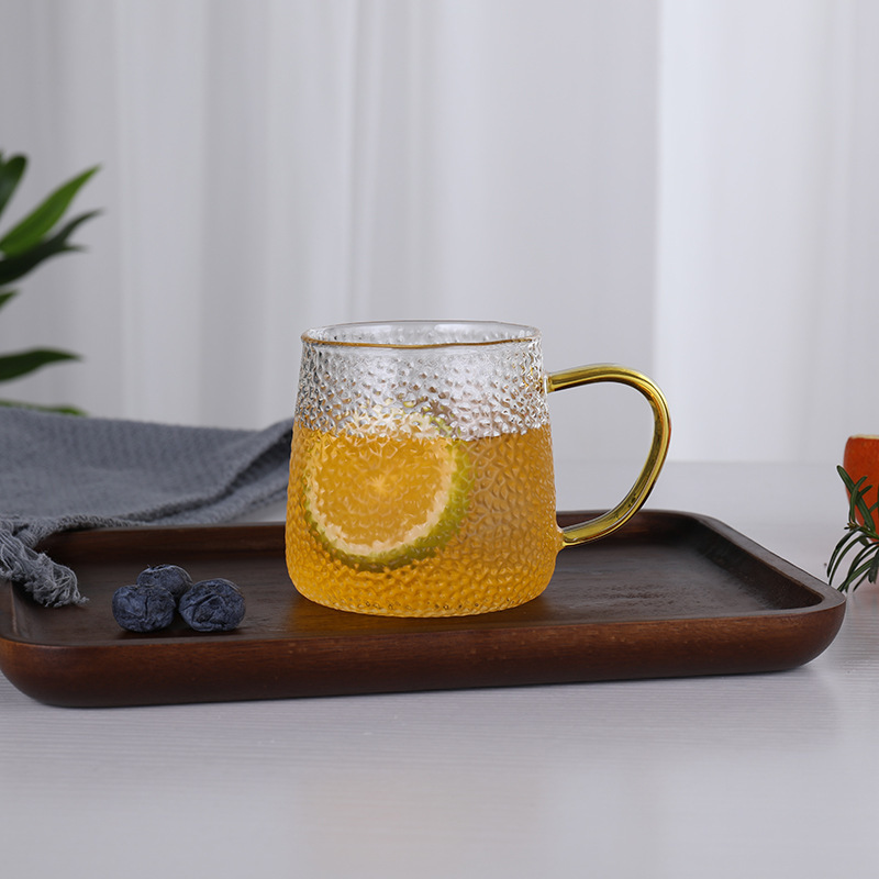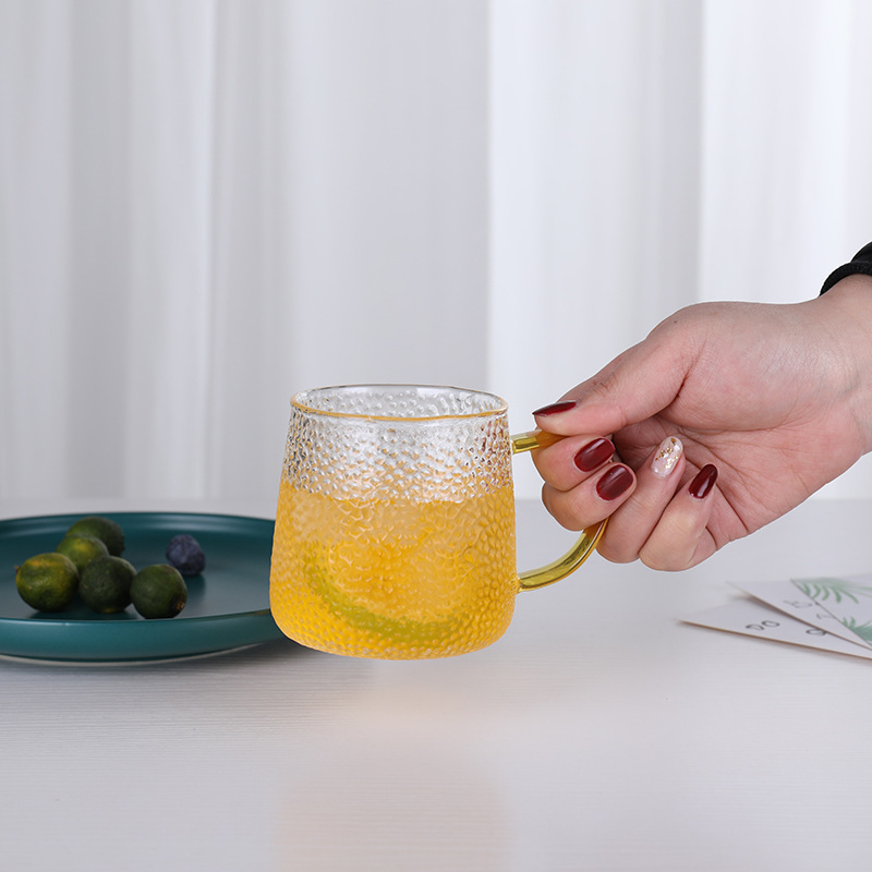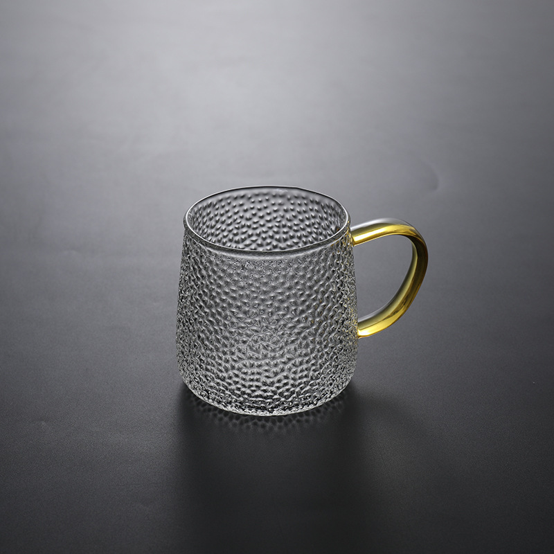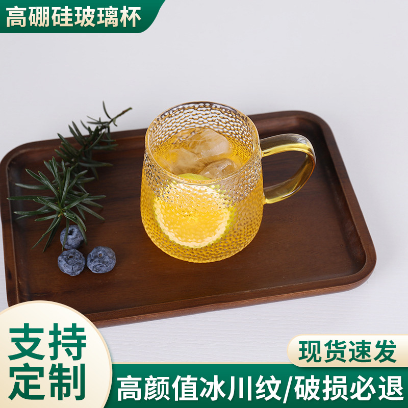 日式锤纹玻璃杯带把手网红玻璃杯子ins风 冰川纹高硼硅玻璃茶杯
