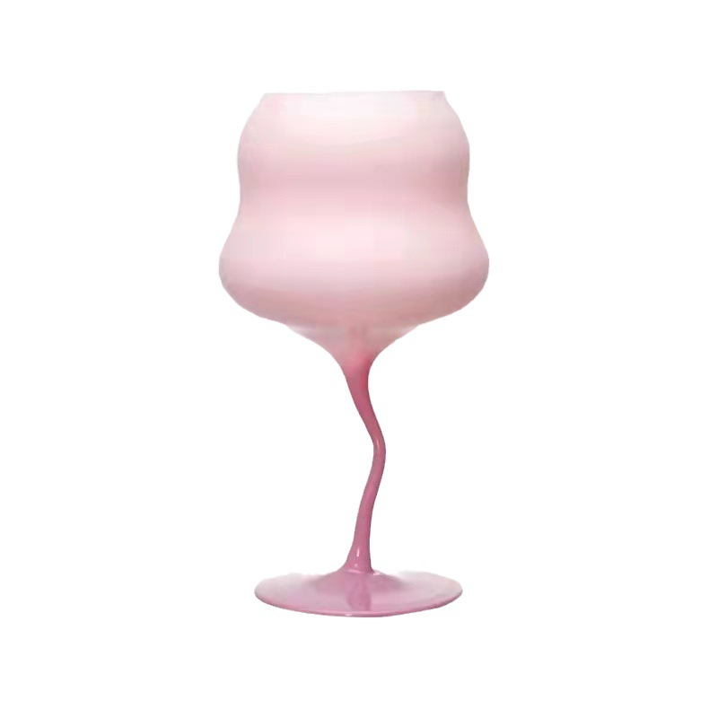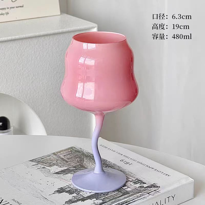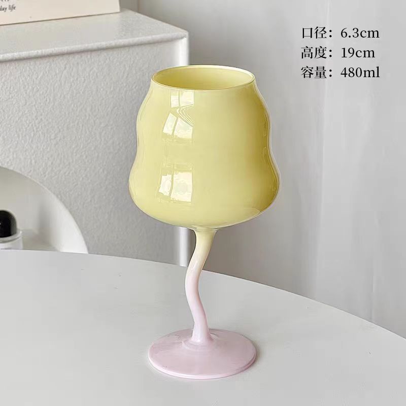 马卡龙糖果撞色高脚杯欧式葡萄酒杯奶油色扭扭杯少女心高脚玻璃杯