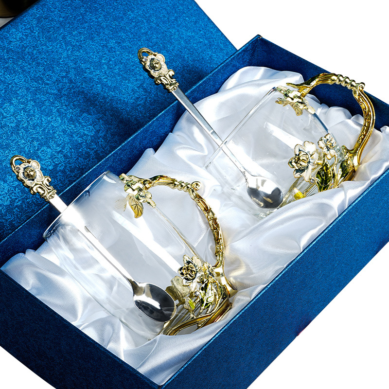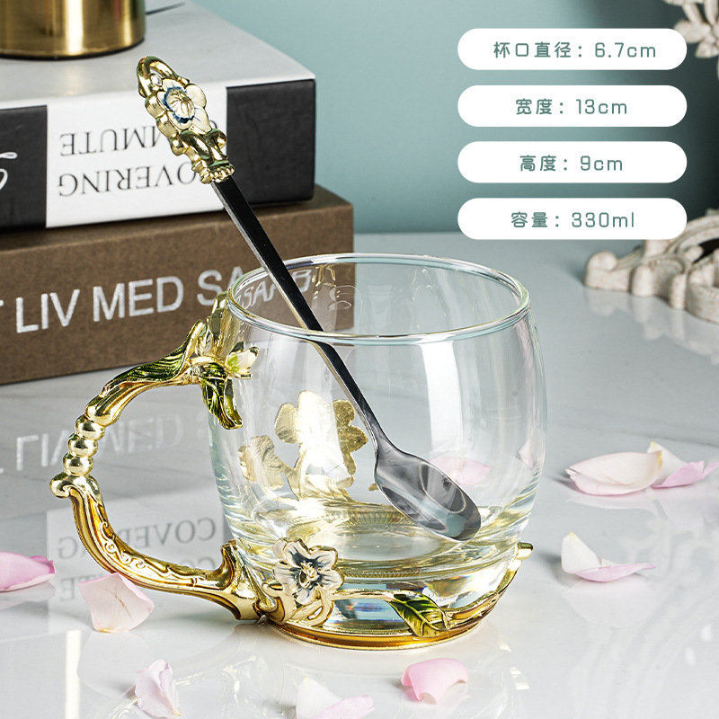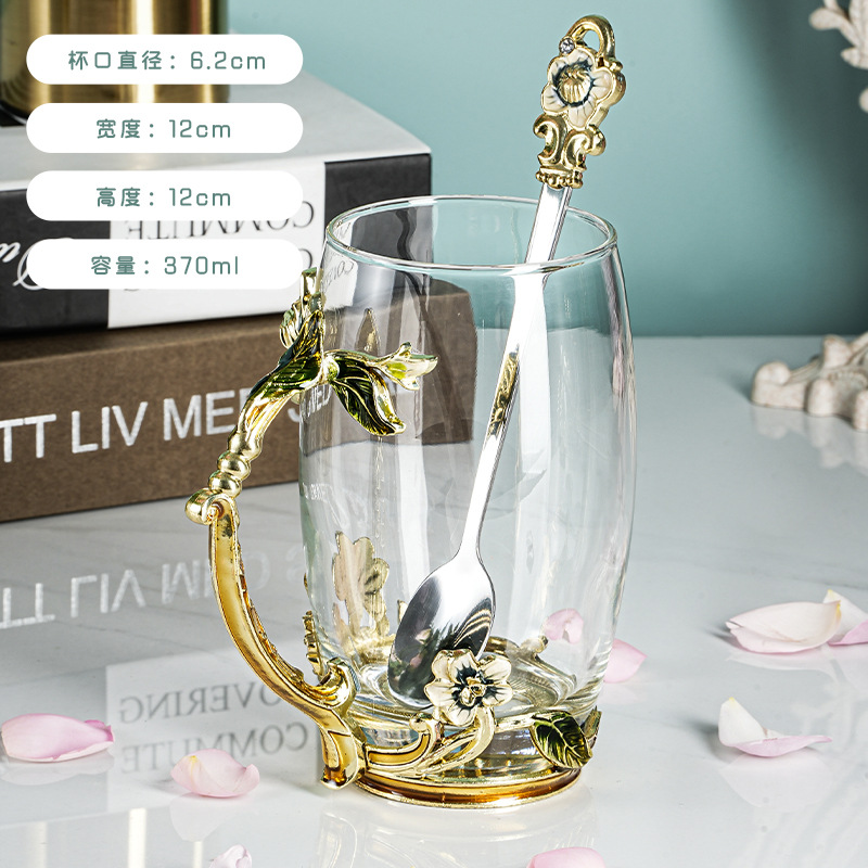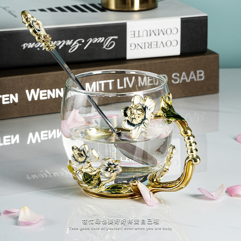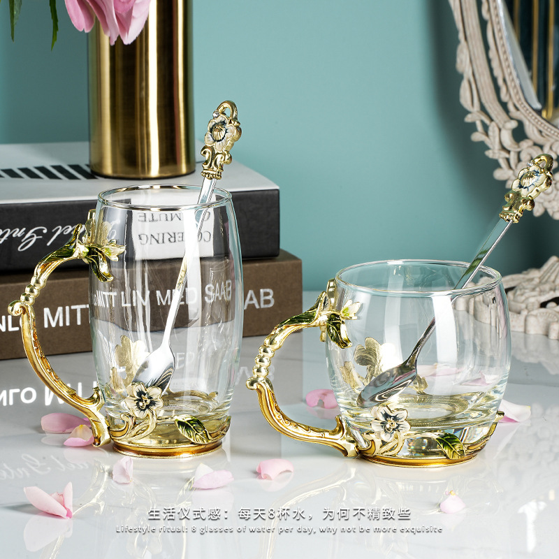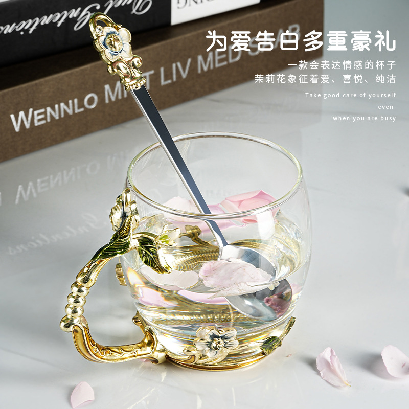 珐琅彩水杯耐热玻璃杯花茶杯茉莉花家用杯子套装创意新款咖啡杯