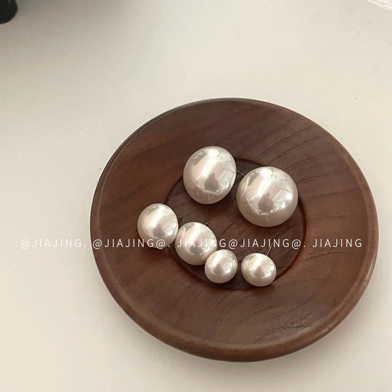 925银针法式圆形大珍珠耳钉女复古时尚小众港风气质名媛耳环耳饰