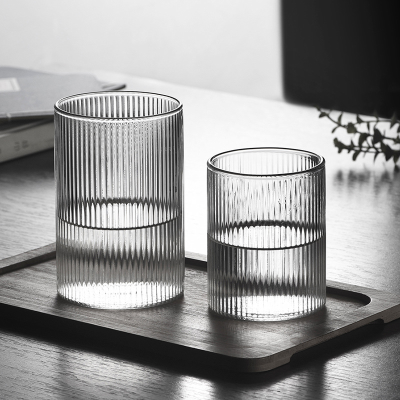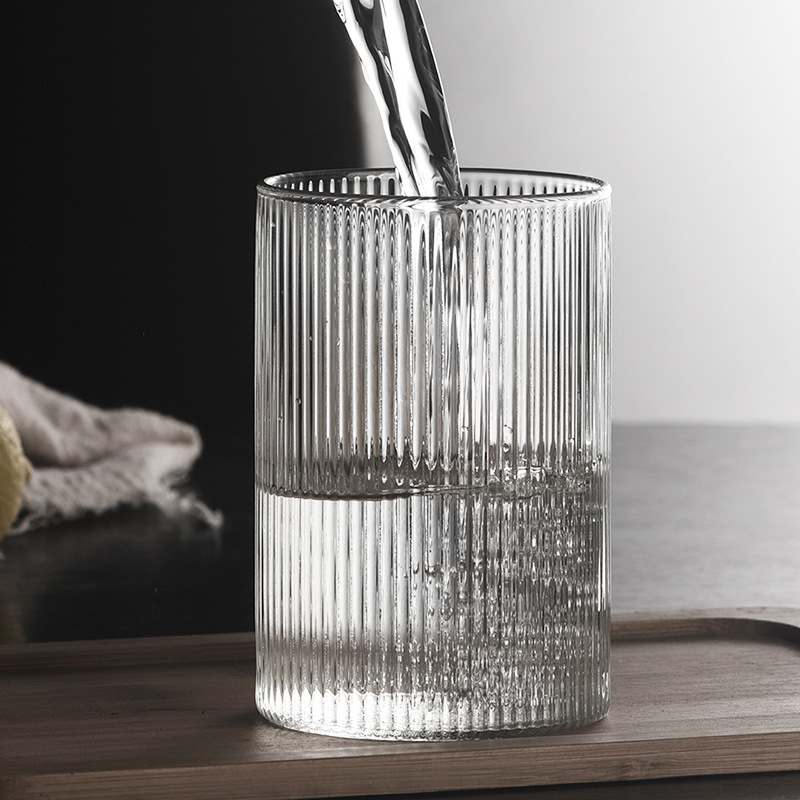 玻璃杯条纹耐高温高硼硅耐热玻璃透明水杯家用网红ins果汁杯酒杯