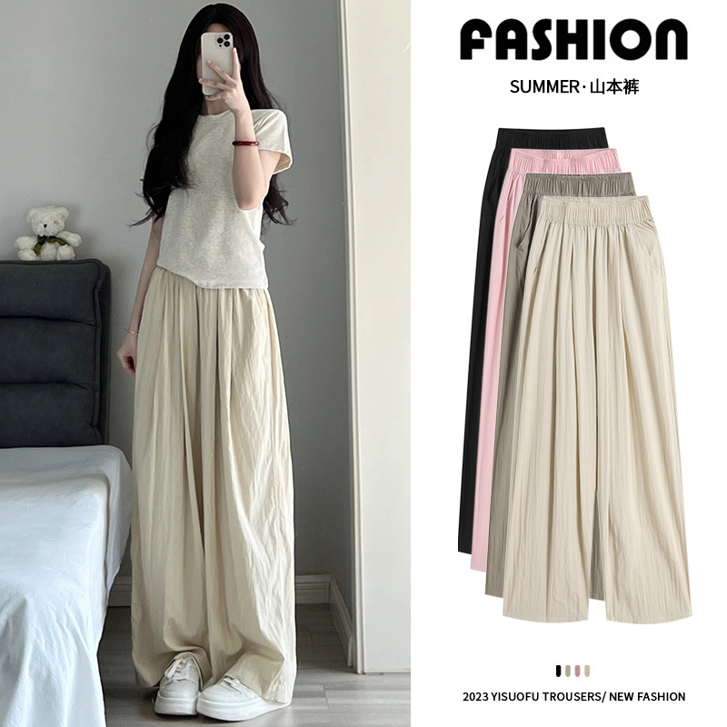 冰丝阔腿裤女夏季新款高腰垂感宽松薄款直筒禅意棉麻山本裤遛弯裤