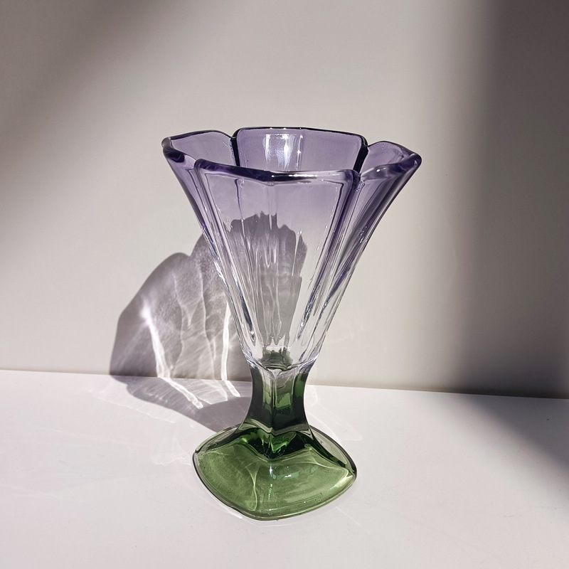 法国中古杯彩色郁金香玻璃杯水杯果汁杯高颜值奶昔杯鸡尾酒啤酒杯