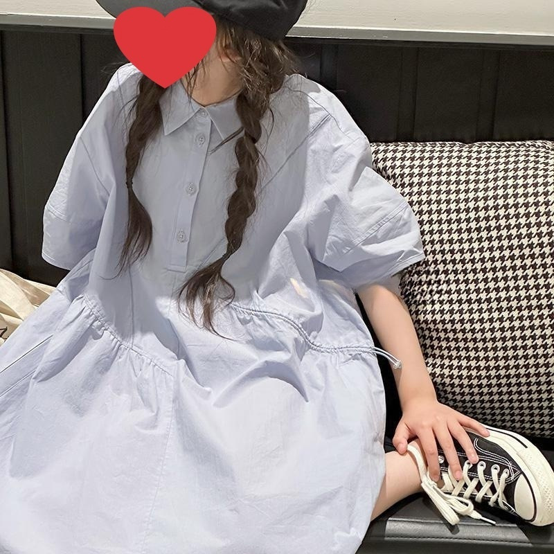 女童韩版休闲连衣裙夏季新款中大童洋气学院风时髦衬衫连衣裙