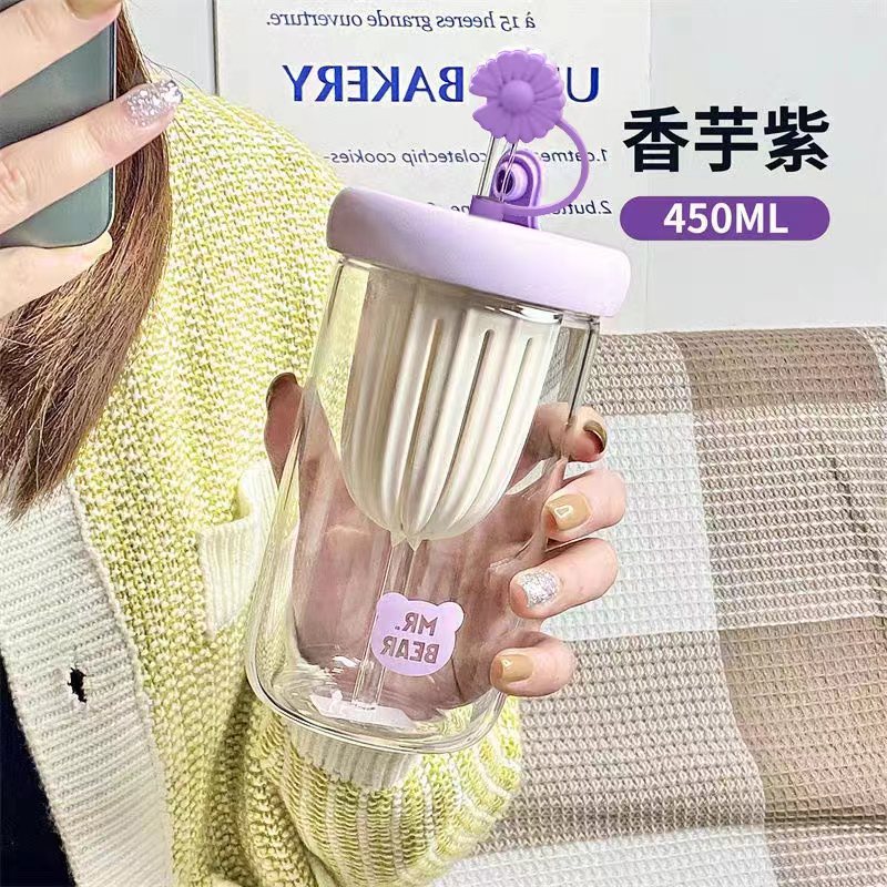 冷萃杯玻璃泡茶杯新款水杯随行便携茶水分离杯女生高颜值吸管杯子