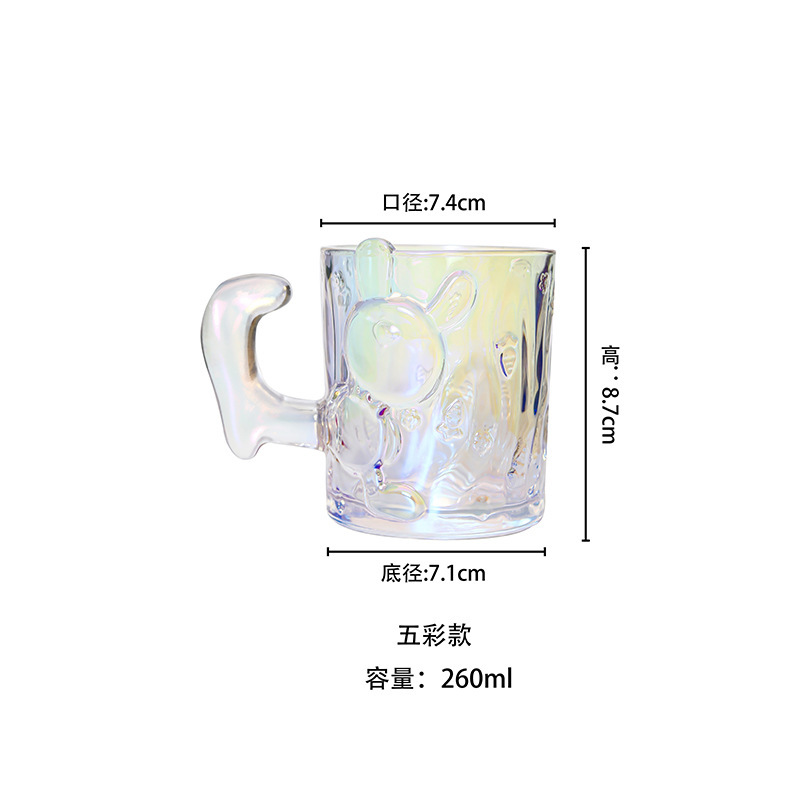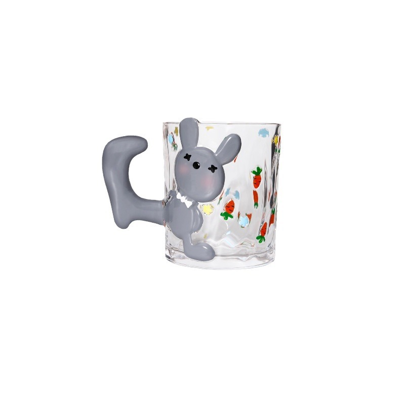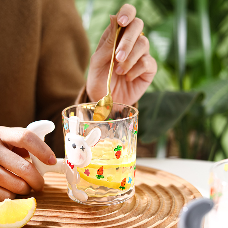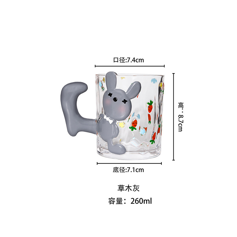 萌兔卡通彩绘高颜值水晶玻璃杯家用带把酸奶燕麦牛奶杯小清新果汁