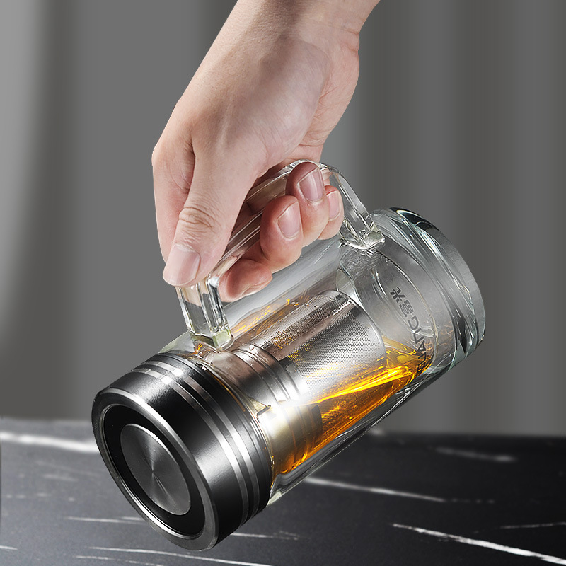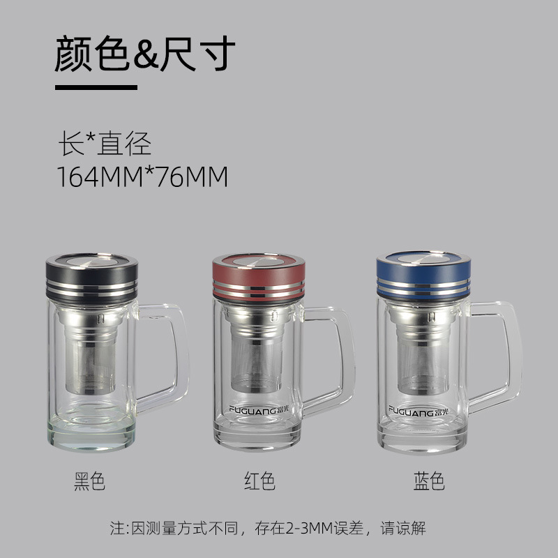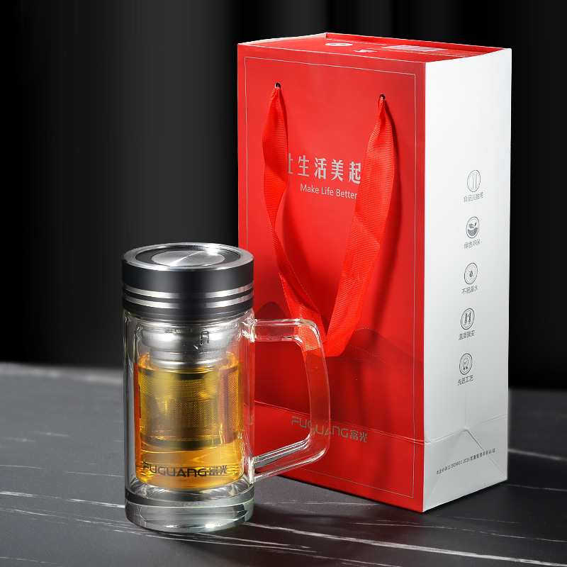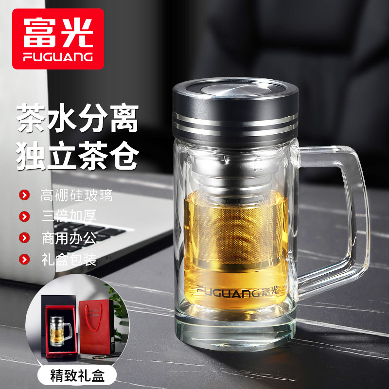 富光玻璃杯双层水杯茶水分离茶杯高颜值家用办公水晶杯子礼品