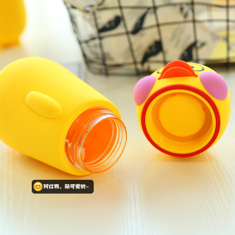 韩版ins学霸网红玻尿酸羞羞鸭耐热温玻璃杯提绳果汁水杯学生礼品