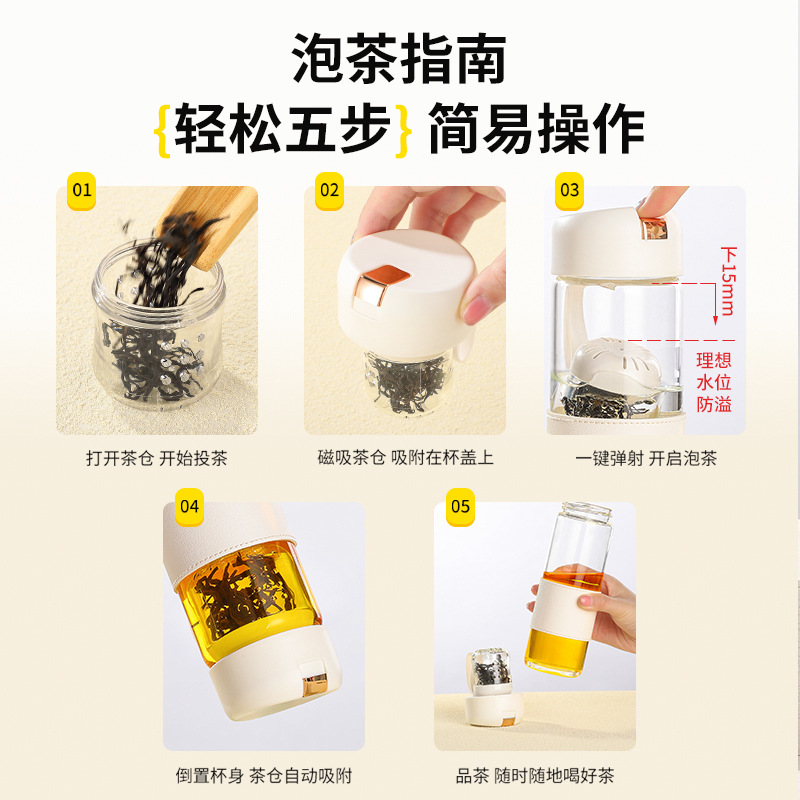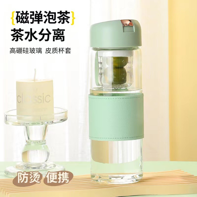 礼品高硼硅玻璃杯磁吸杯茶水分离一键弹射泡茶杯磁弹不锈钢新款