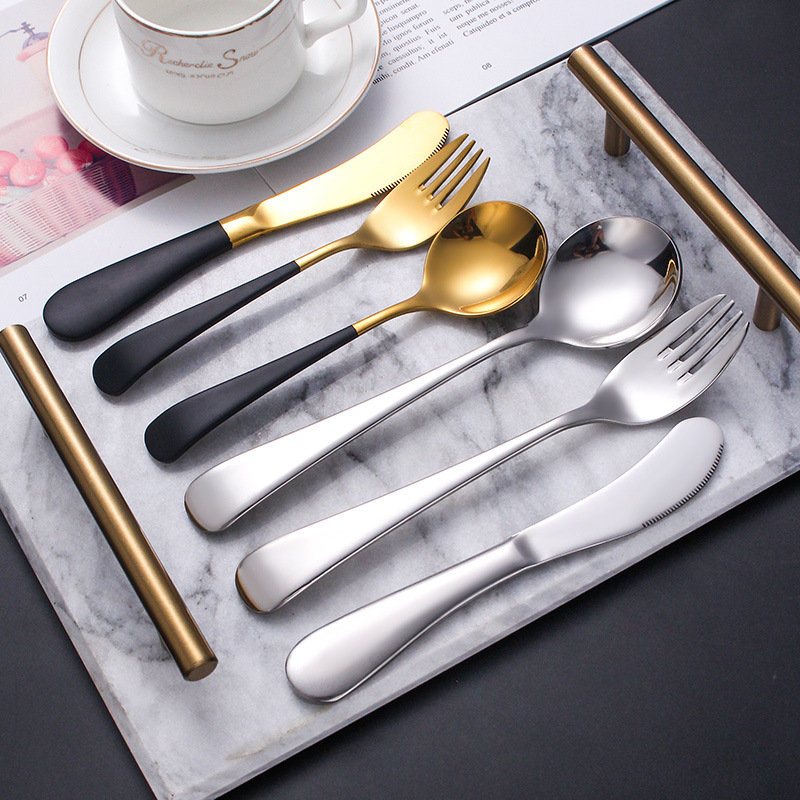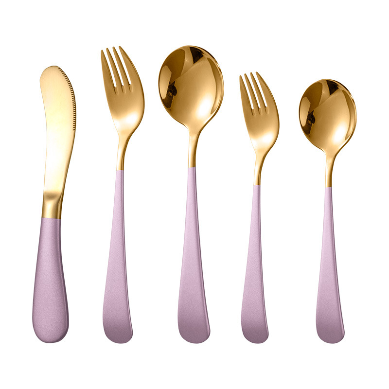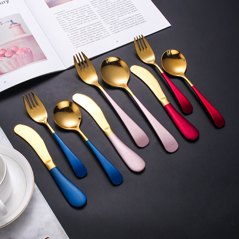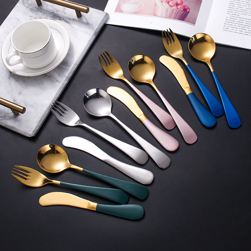 304不锈钢创意双拼色刀叉勺套装 儿童勺叉汤勺调羹小餐刀