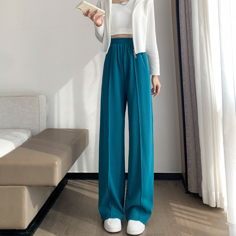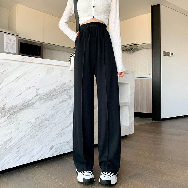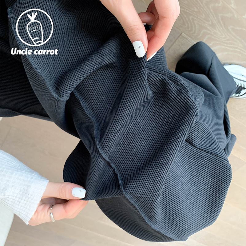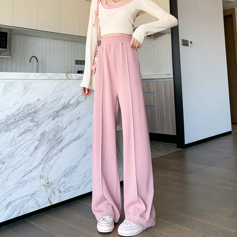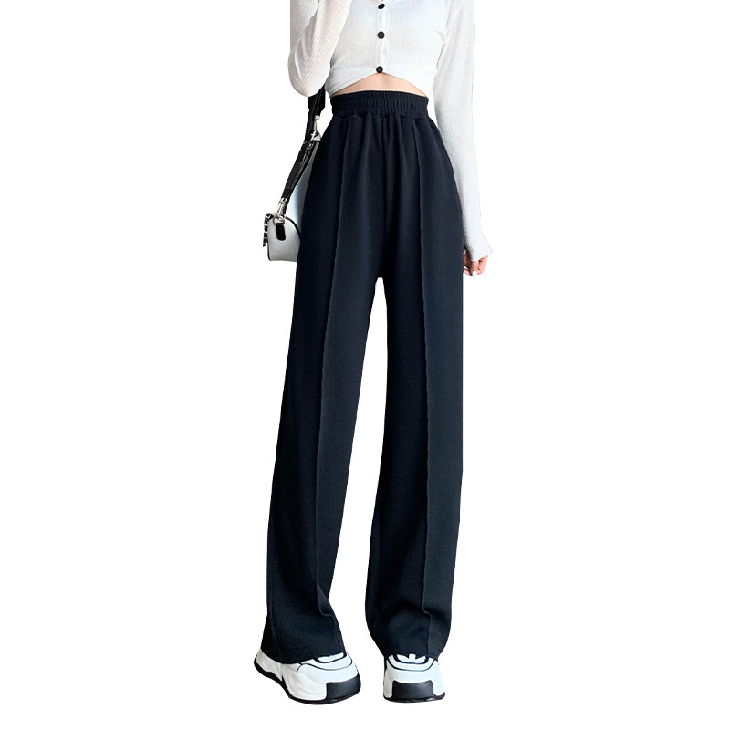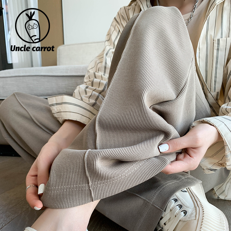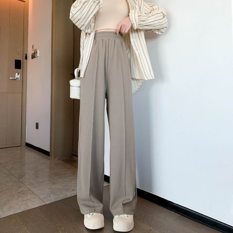 萝卜大叔针织窄版阔腿裤女春季前中缝高腰休闲裤拖地直筒裤子