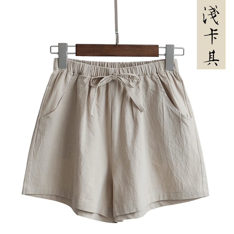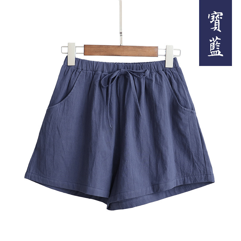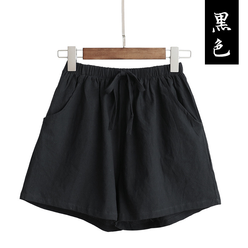 棉麻短裤女夏宽松阔腿裤显瘦松紧腰休闲外穿