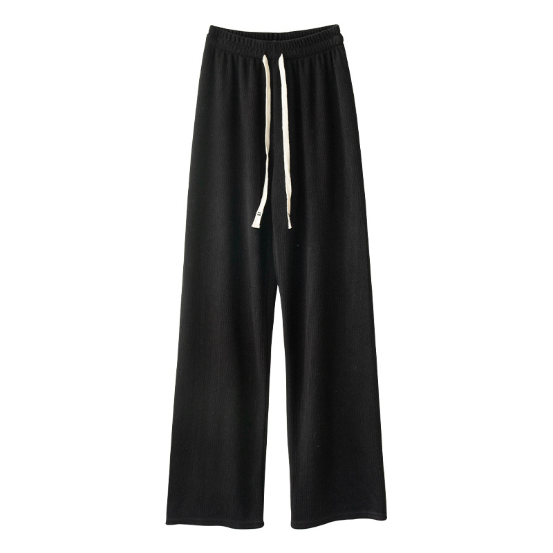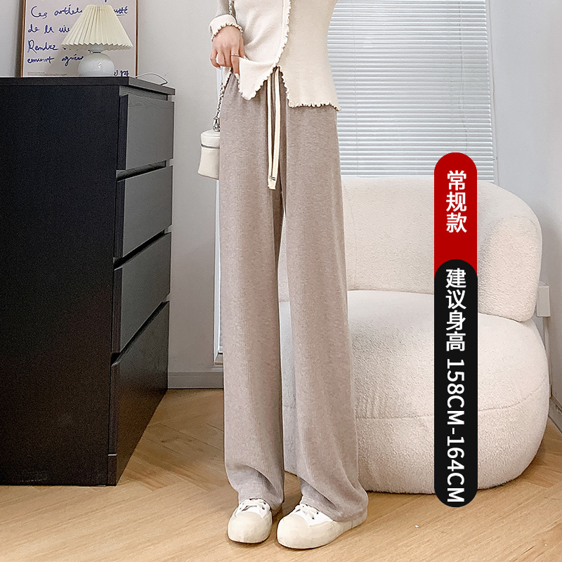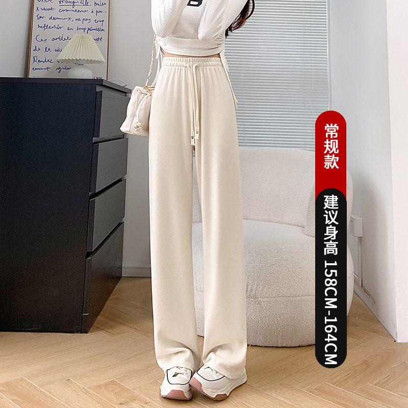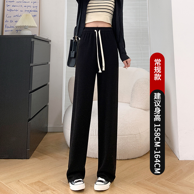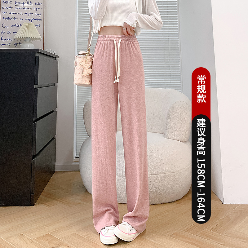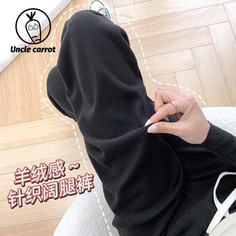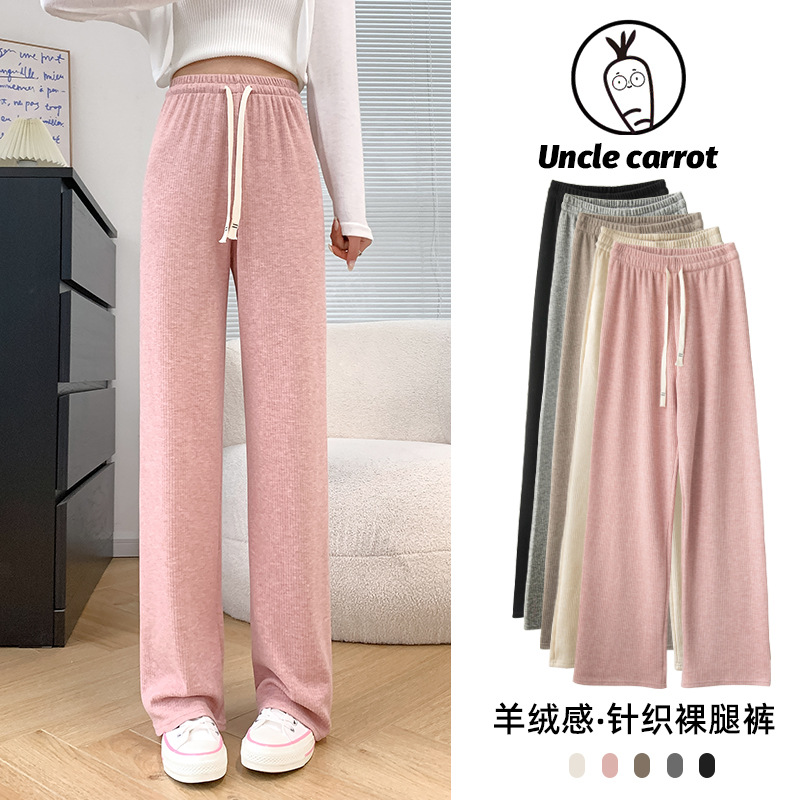 萝卜大叔窄版阔腿裤女春季新款高腰直筒裤女装粉色羊绒裤