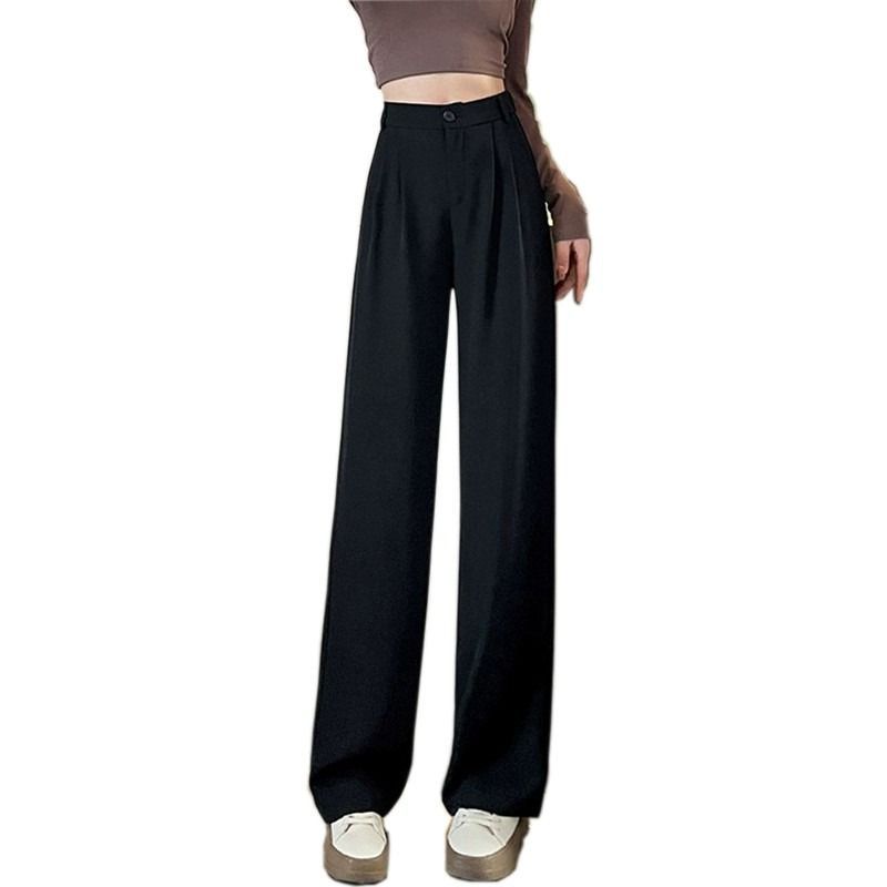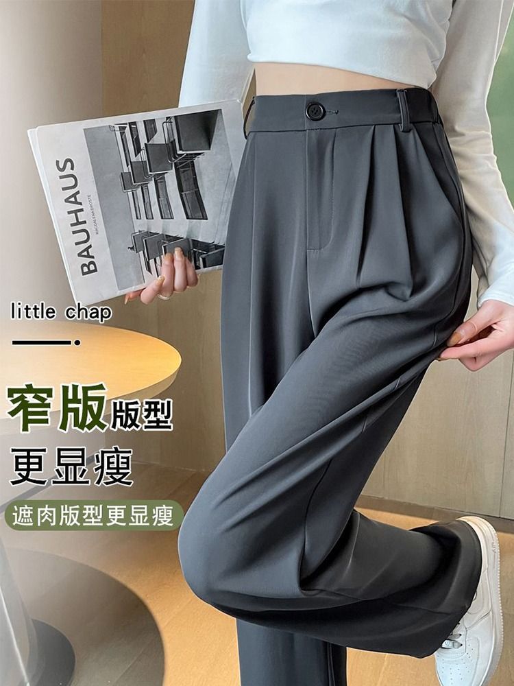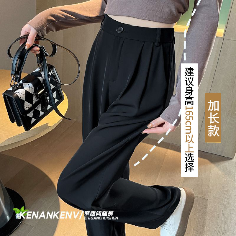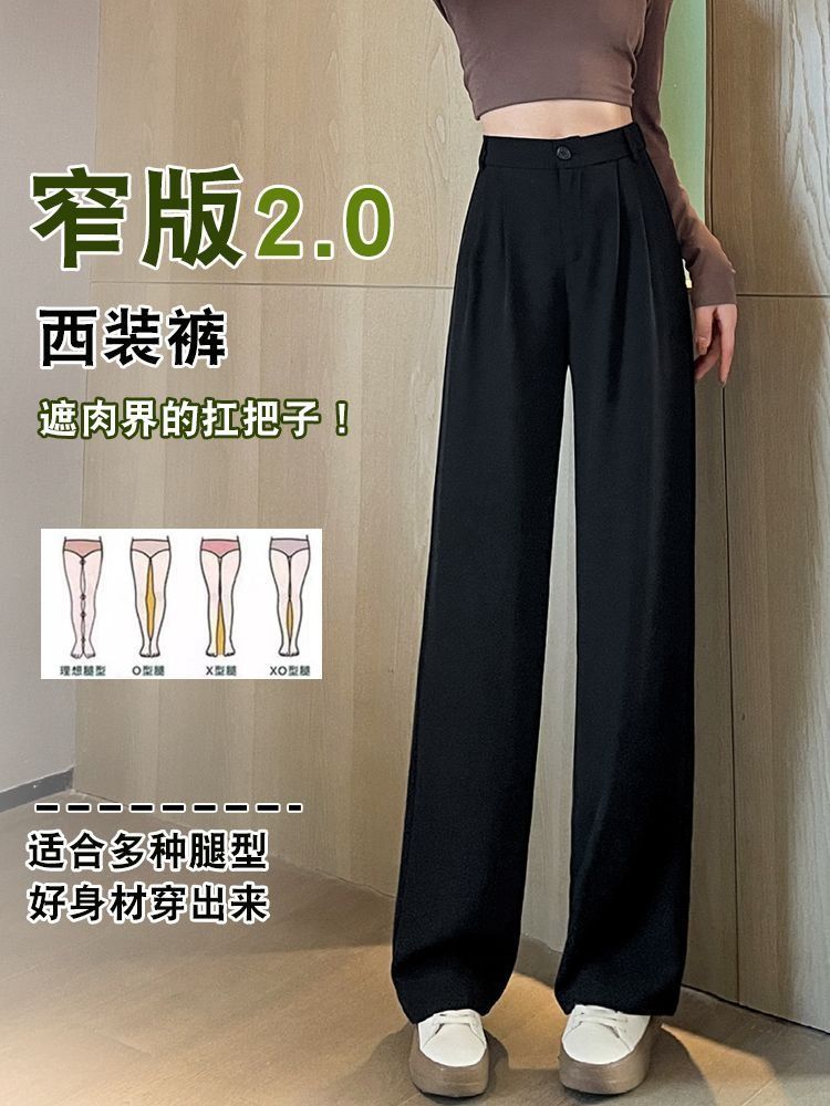 西装裤女裤子春秋新款高级垂感窄版直筒西裤小个子黑色阔腿裤