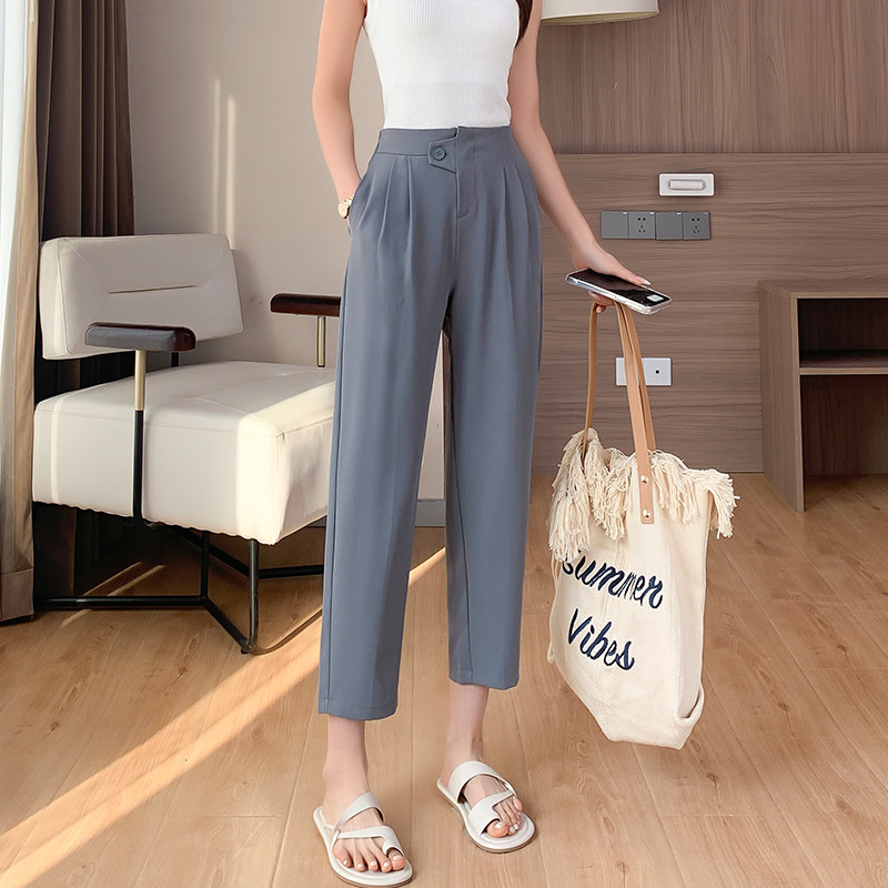 抖音爆款九分小脚西装裤薄款高腰显瘦直筒哈伦裤休闲女裤