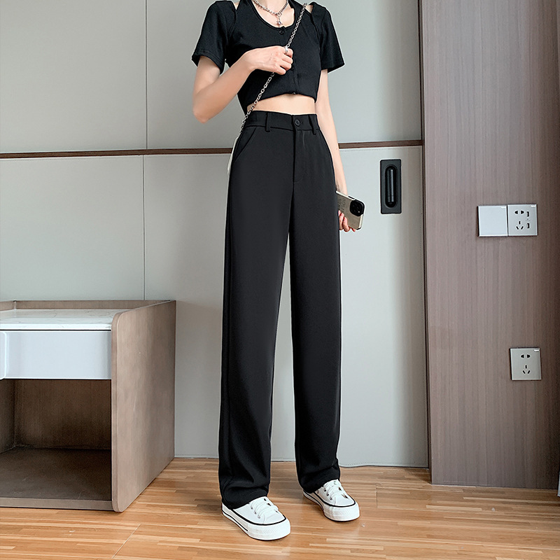黑色西装阔腿裤女年春秋新款高腰直筒裤垂直感宽松拖地长裤子
