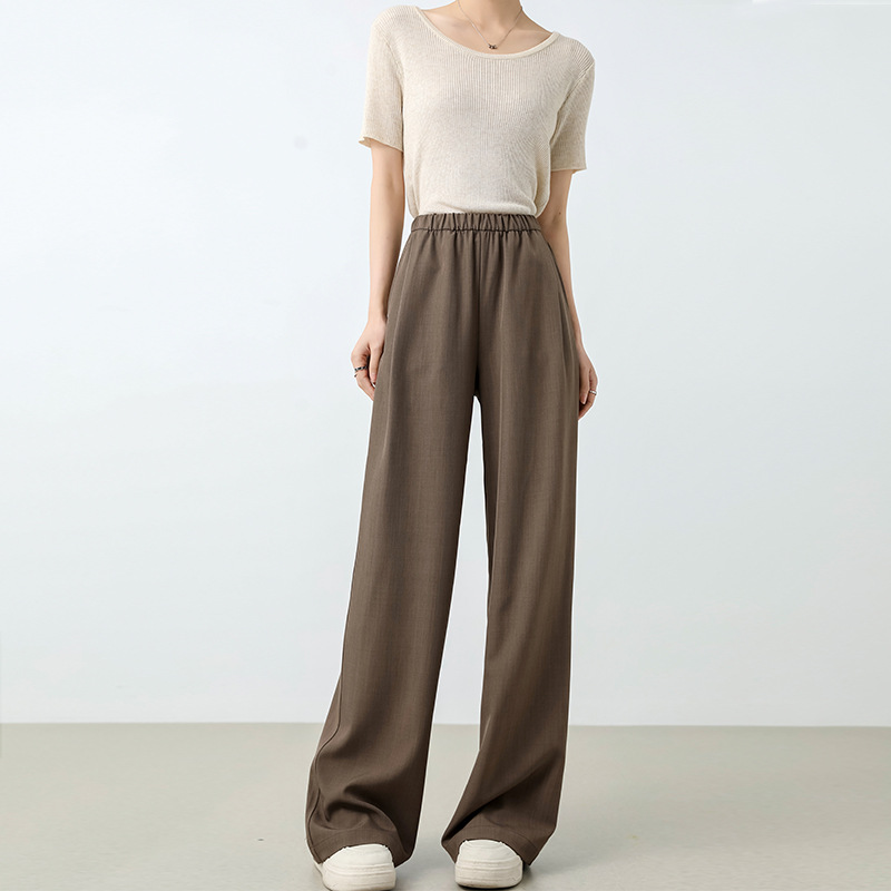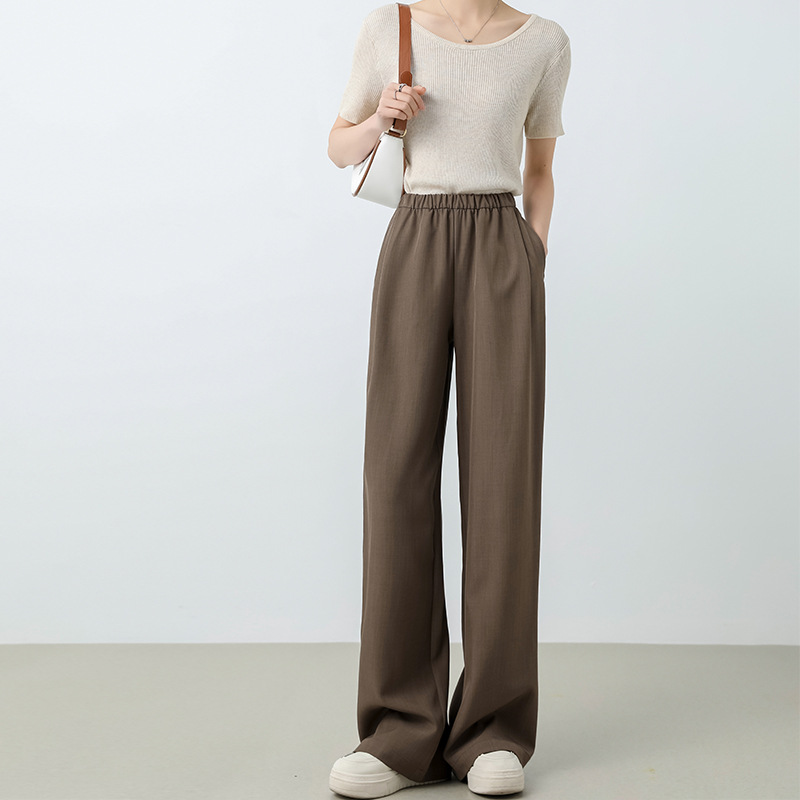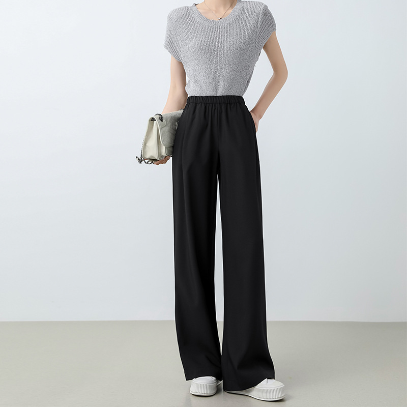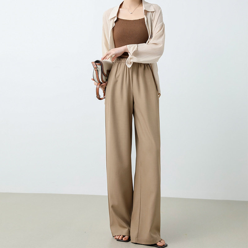春夏新款高腰宽松垂感休闲裤阔腿显瘦小个拖地直筒裤