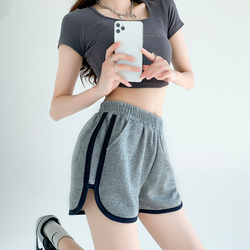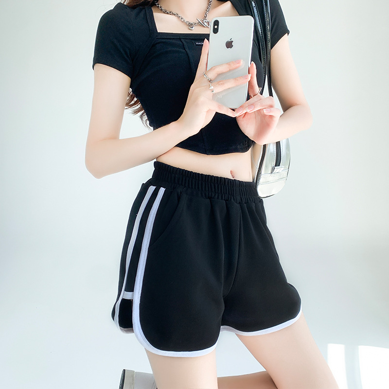 运动短裤女夏季宽松薄款新款高腰小个子休闲辣妹三分针织短裤