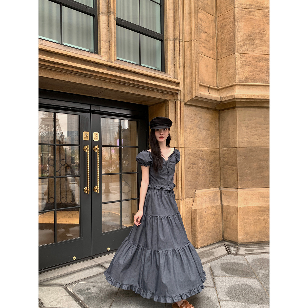 诠释美NEW OPEN褶皱半身裙女夏时尚百搭高腰a字蛋糕裙82550