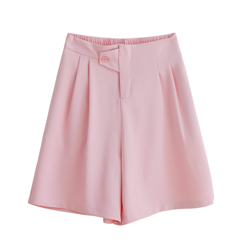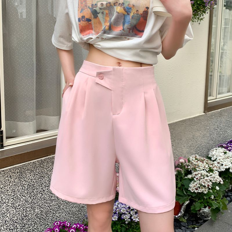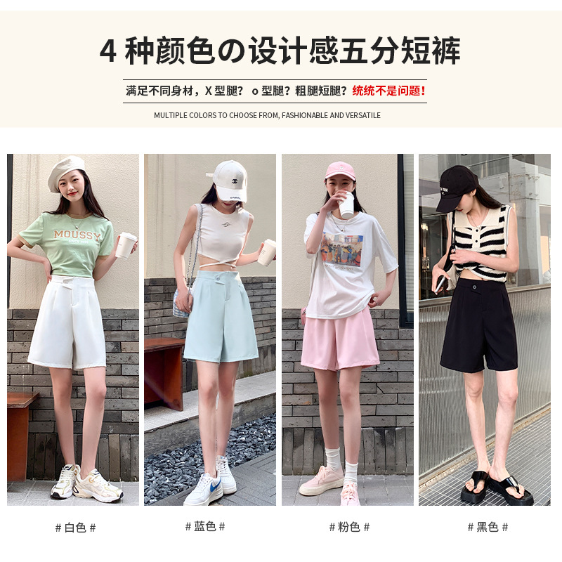 单扣西装短裤女夏季薄款直筒高腰运动阔腿裤休闲裤子五分短裤