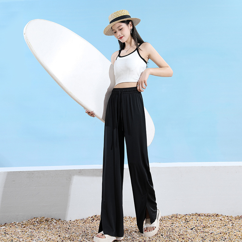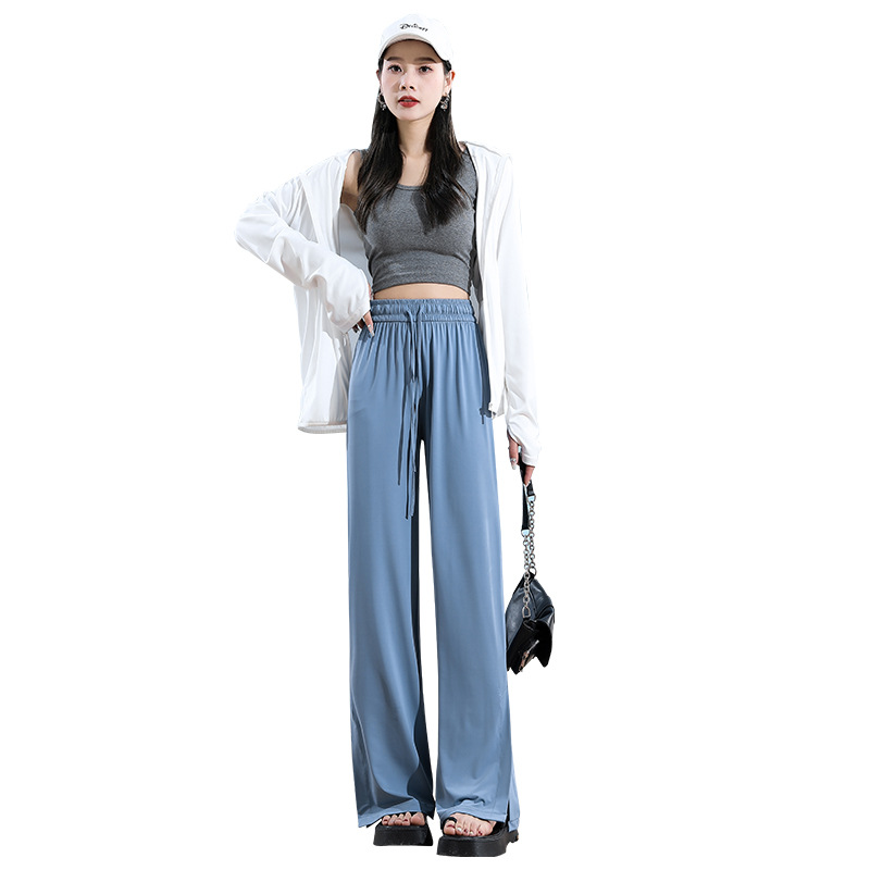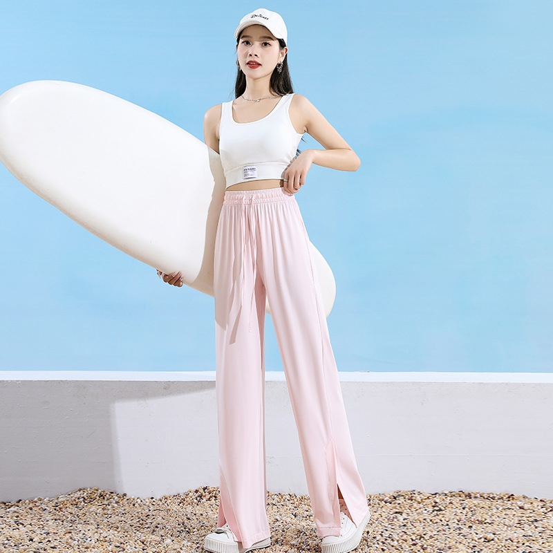 萝卜大叔防晒裤女薄款夏季高腰垂感直筒阔腿裤休闲运动开叉冰丝裤