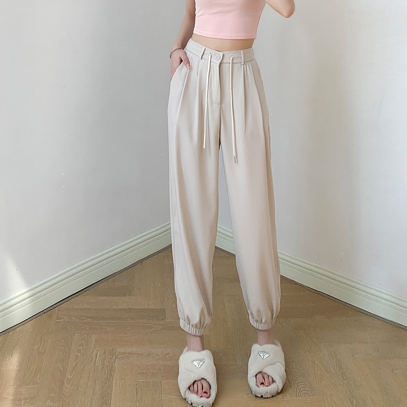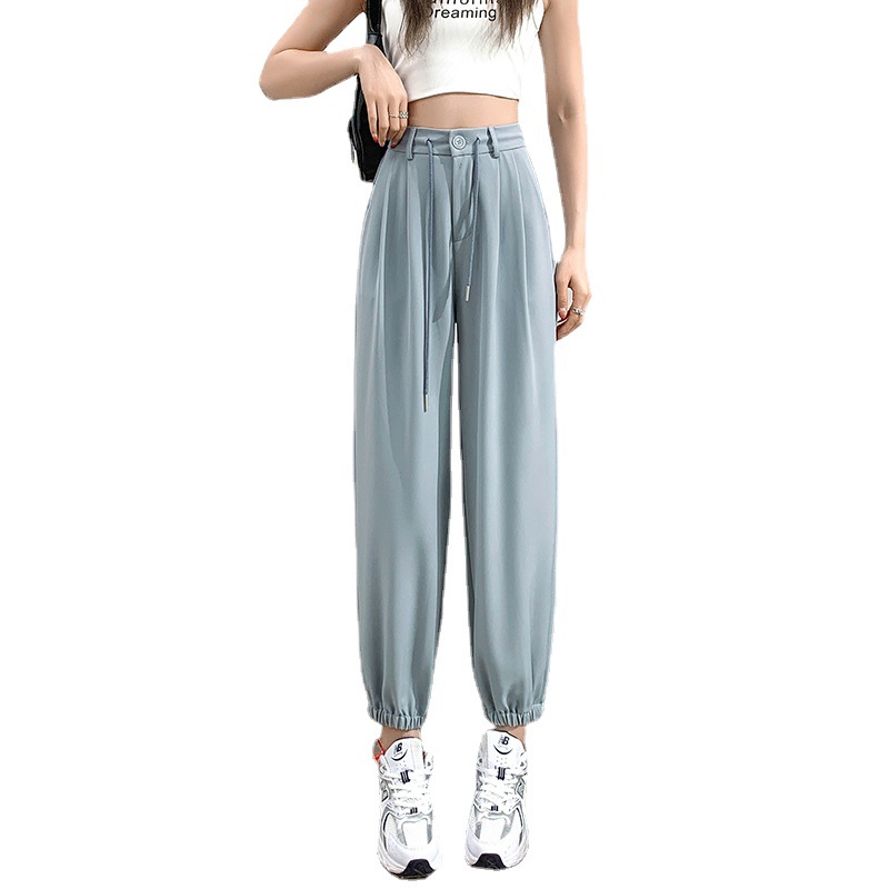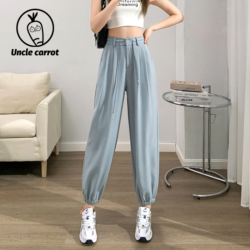 九分西装裤女夏季薄款高腰哈伦束脚裤单扣休闲阔腿裤女裤