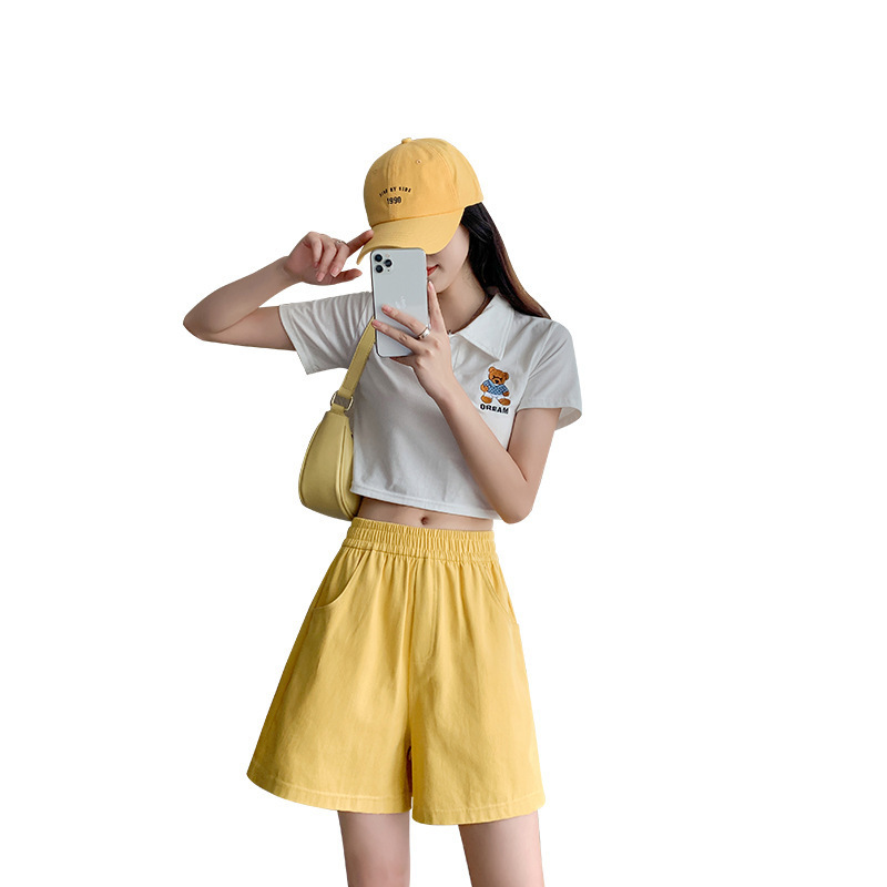 显瘦宽松阔腿运动裤休闲短裤 夏季女高腰夏小个子糖果色短裤