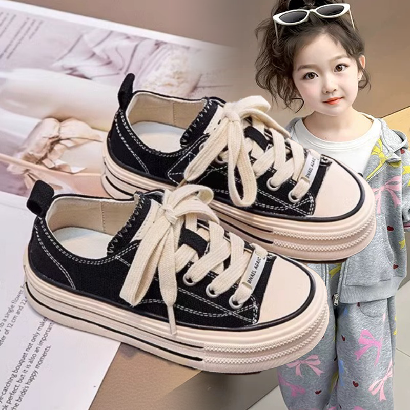 女童新款帆布鞋2025春秋儿童时尚百搭轻便单鞋女孩防滑系带鞋子潮