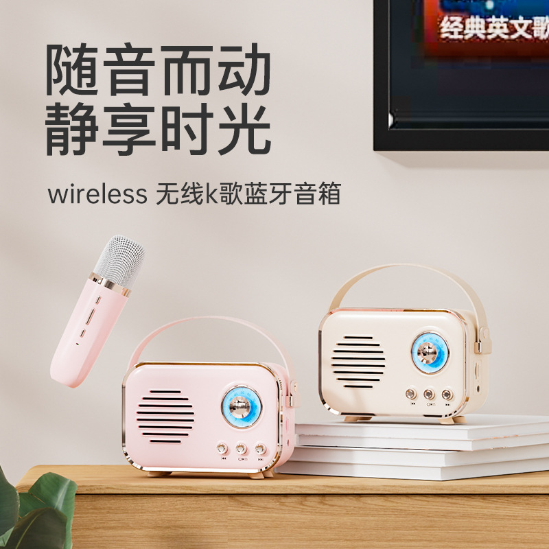 家用便携式蓝牙音箱无线k歌带话筒麦克风小型家庭ktv户外唱歌音响