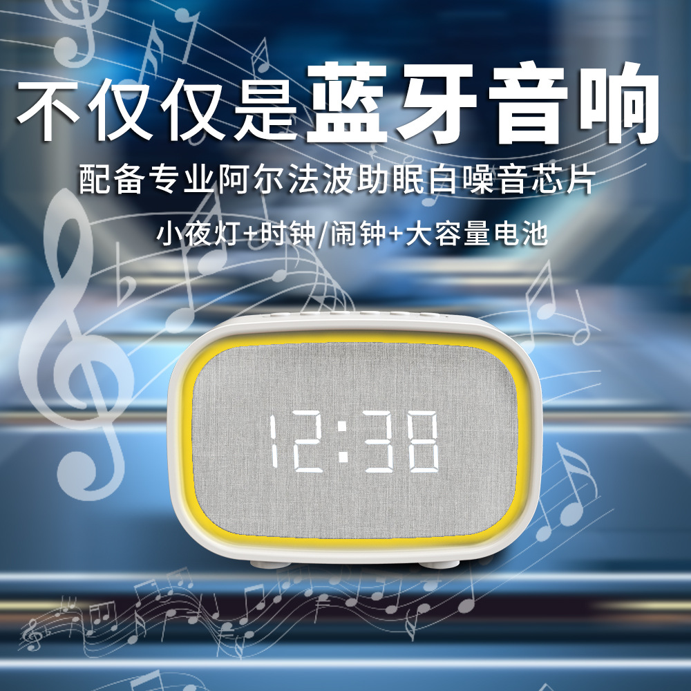 便携式音响蓝牙小夜灯闹钟时间显示睡眠辅助白噪音阿尔法播放器