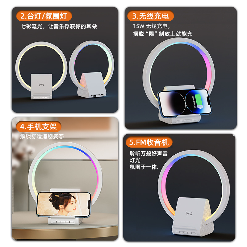 无线蓝牙音箱大G氛围灯无线充音乐台灯多功能智能音响小夜灯床头