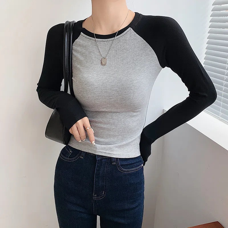 打底衫女内搭春季新款撞色设计感小众短款上衣螺纹长袖t恤