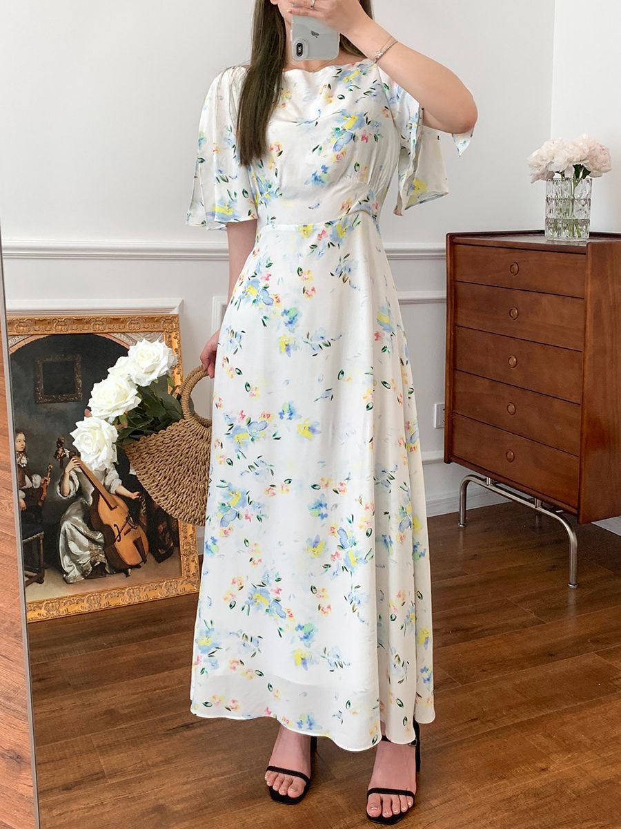 24春夏新款飞袖长款连衣裙印花法式开衩茶歇裙 PA1171859001