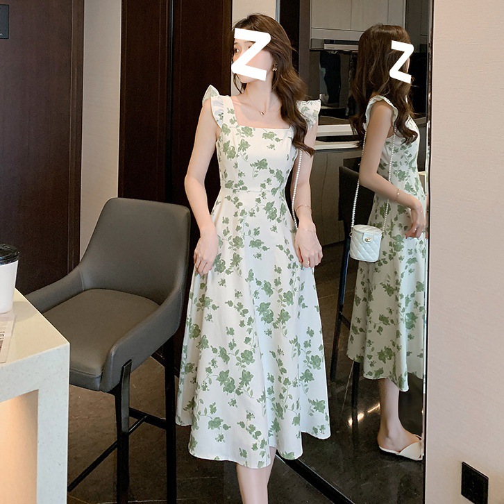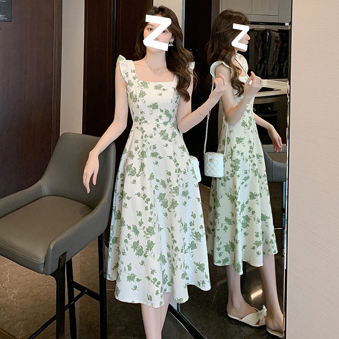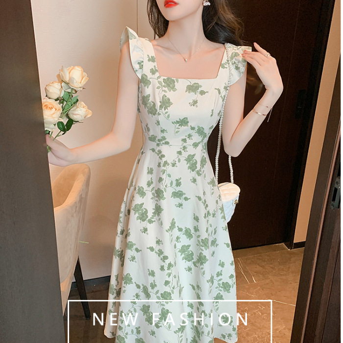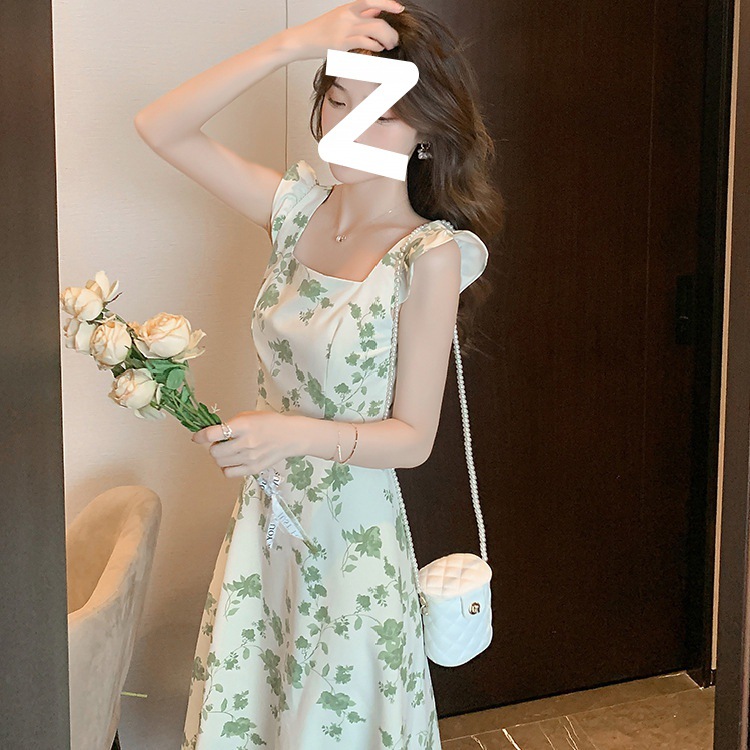 年夏季新款吊带裙子复古浪漫收腰显瘦连衣裙小众设计碎花裙潮