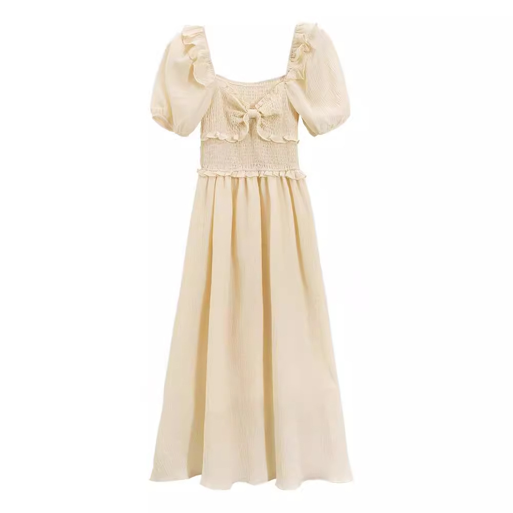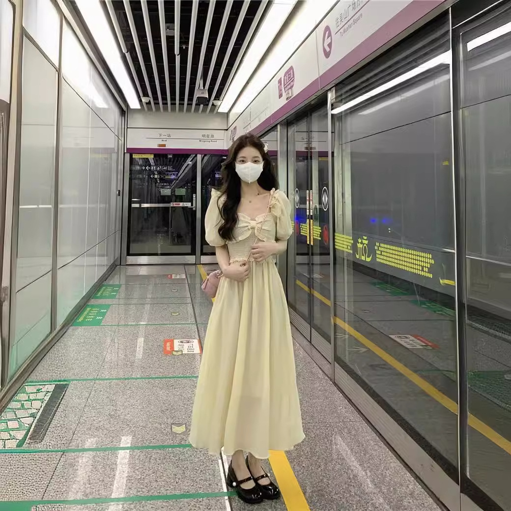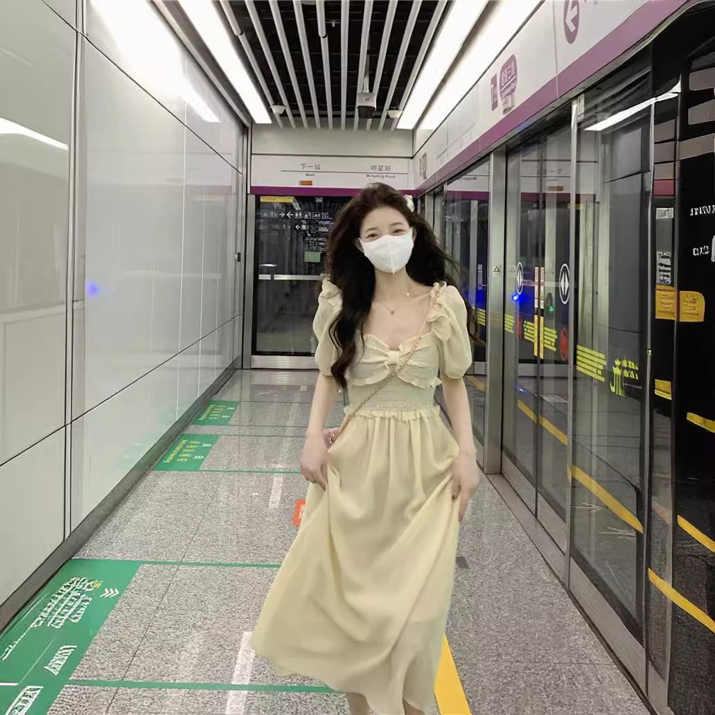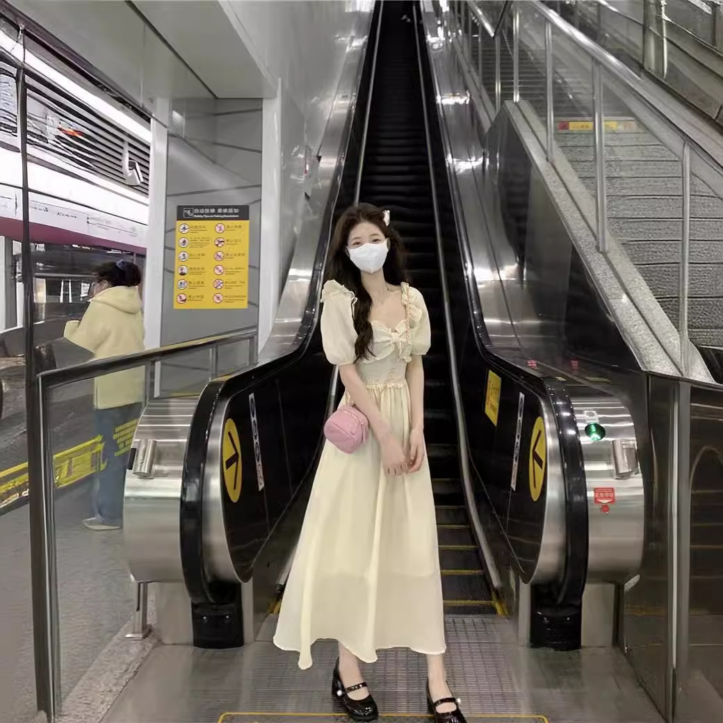 年夏季新款初恋长裙女法式甜美蝴蝶结显瘦遮肉减龄连衣裙