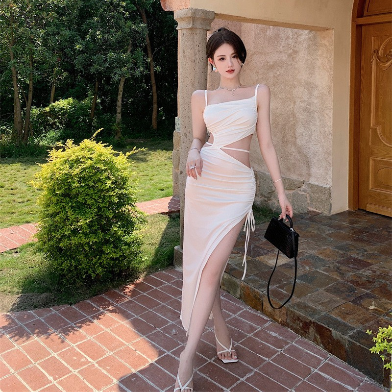 白色吊带裙夏天小众设计感辣妹风心机露腰海边度假连衣裙高级感