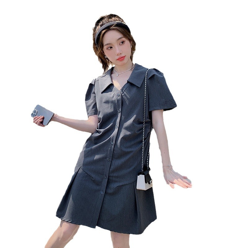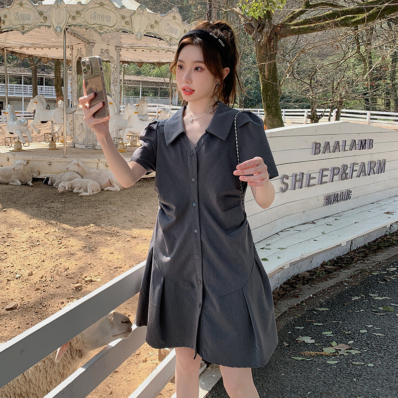 【衬衫连衣裙】灰色高级感小个子褶皱显瘦连衣裙不挑人短款裙子