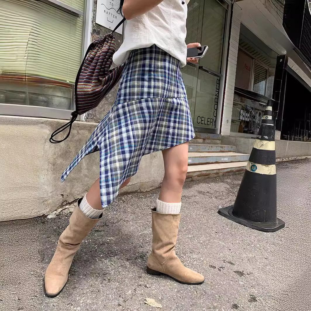 小众设计感不规则短裙女韩版新款韩个性别致格子裙防走光半身裙夏