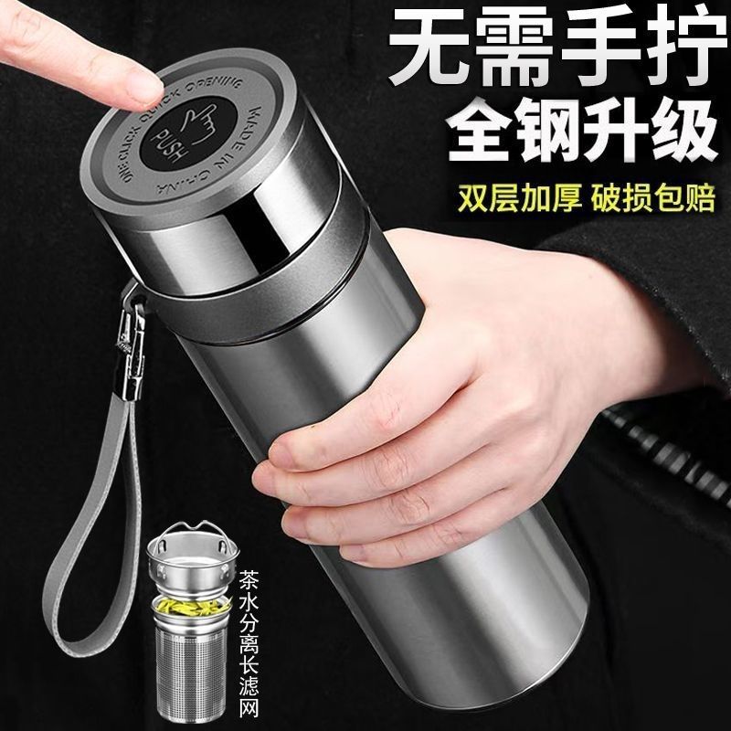 速开保温杯高档新款手指一键秒开盖泡茶杯商务车载喝水茶水分离杯