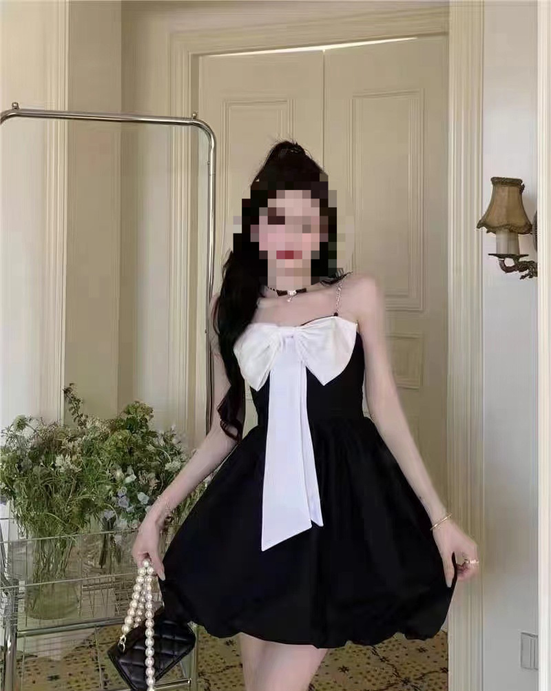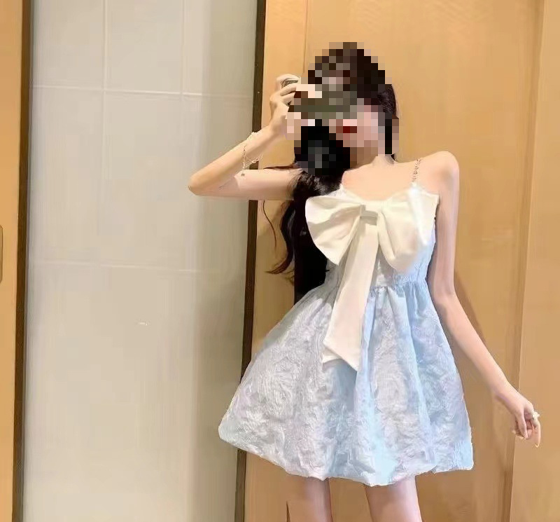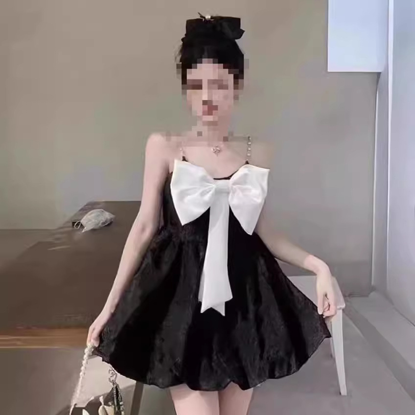 法式甜辣妹性感蝴蝶结吊带连衣裙仙女夏高级感别致气质收腰短裙子