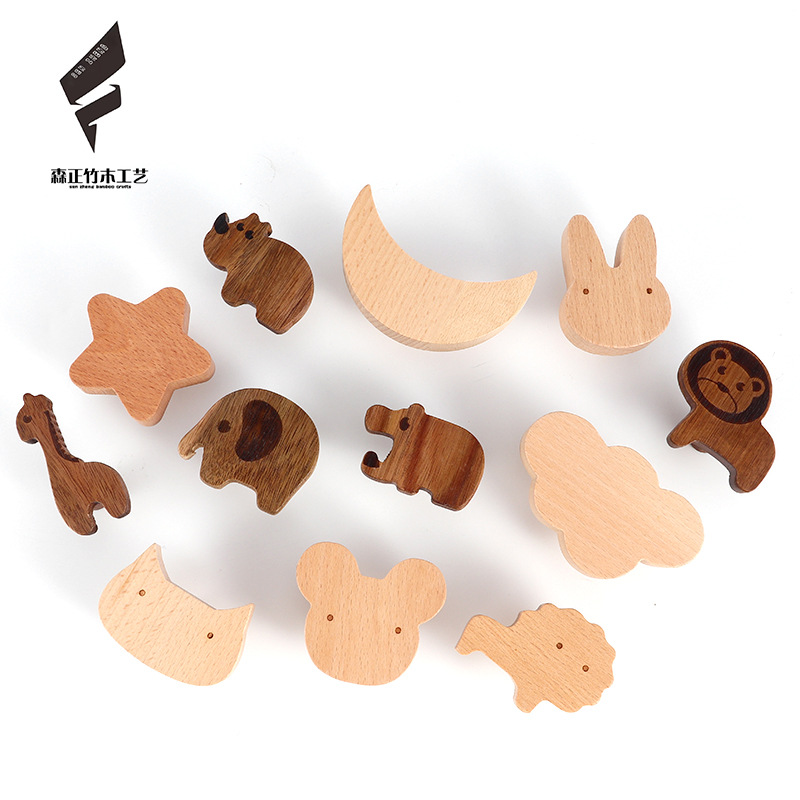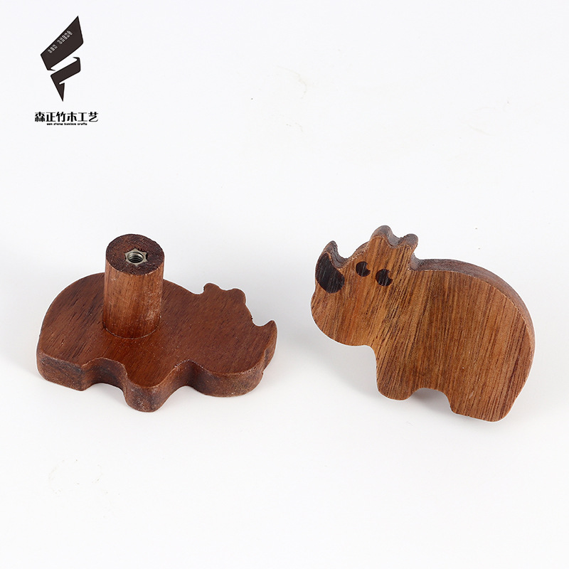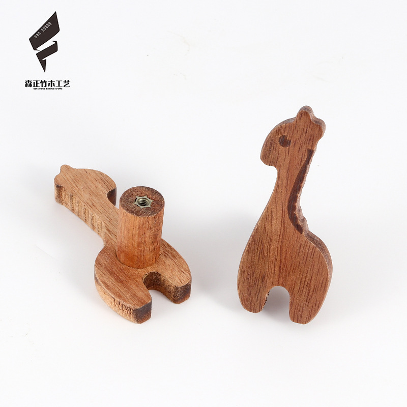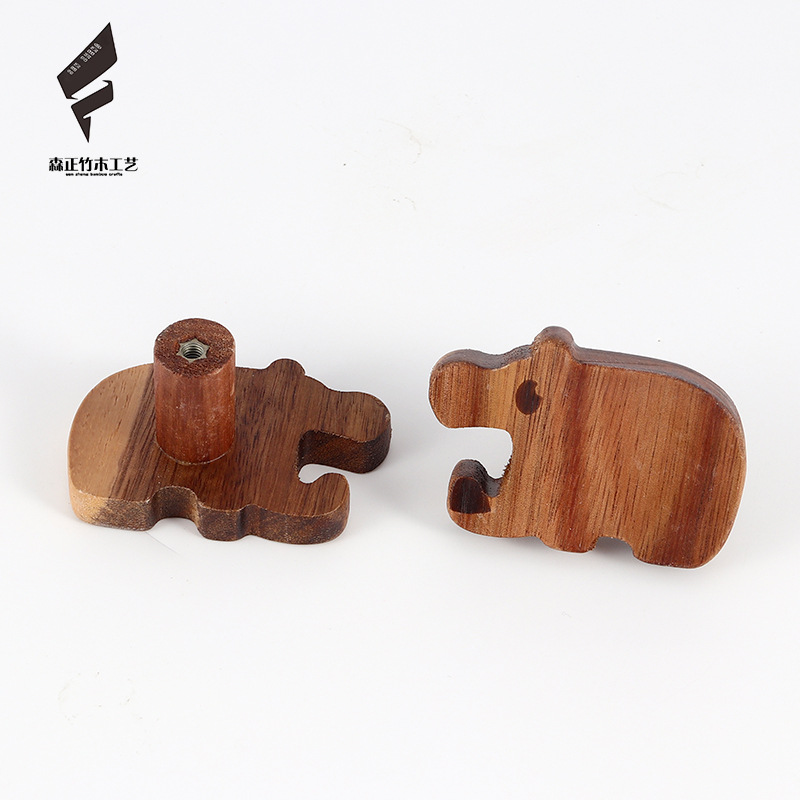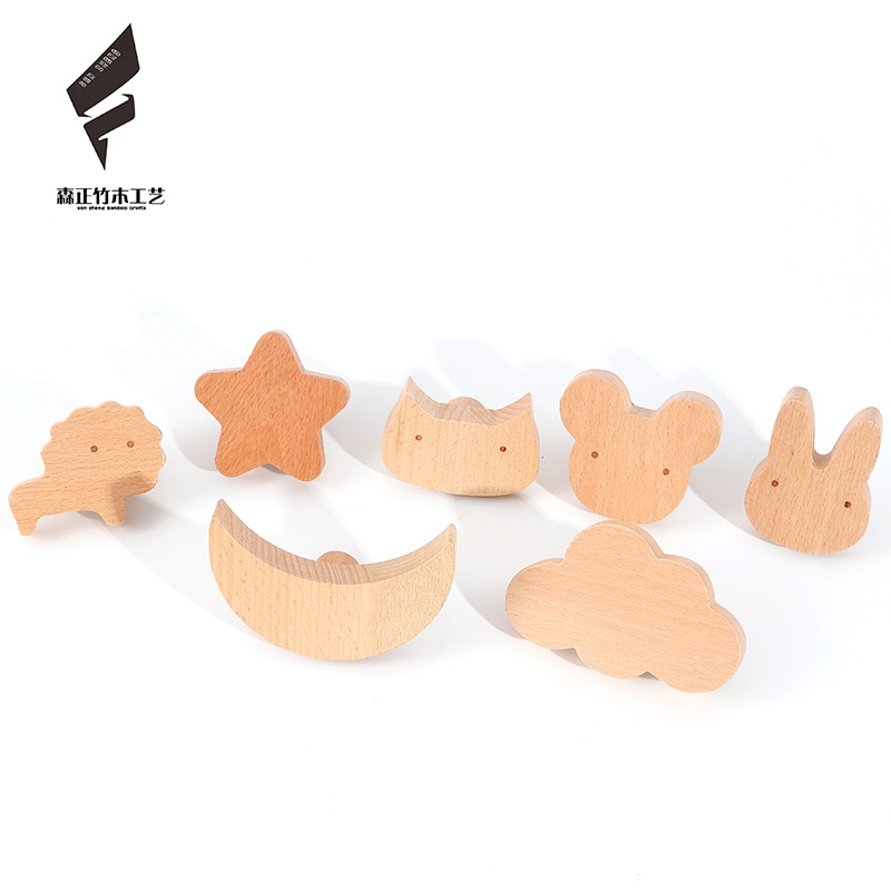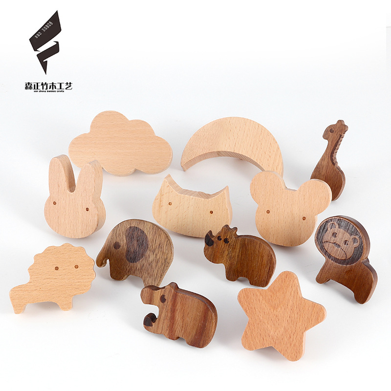 创意实木动物墙壁挂钩北欧风免打孔玄关墙上挂式粘钩木质抽屉拉手