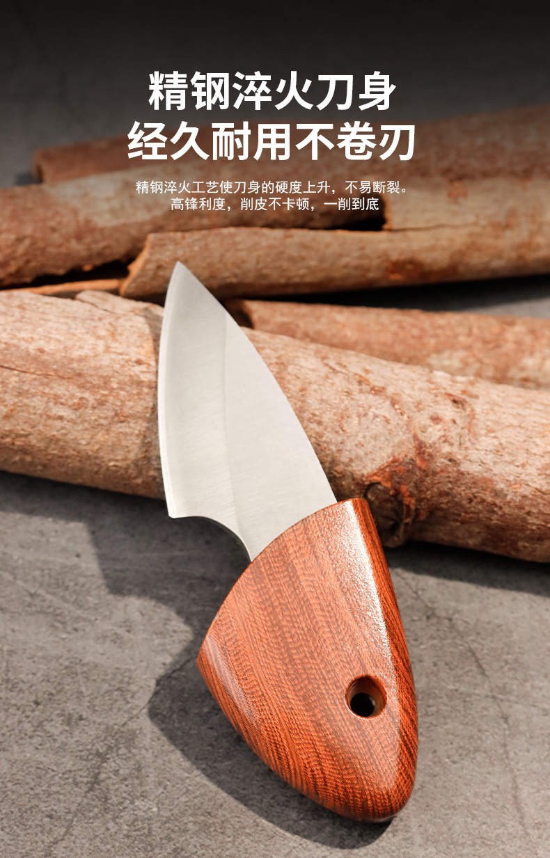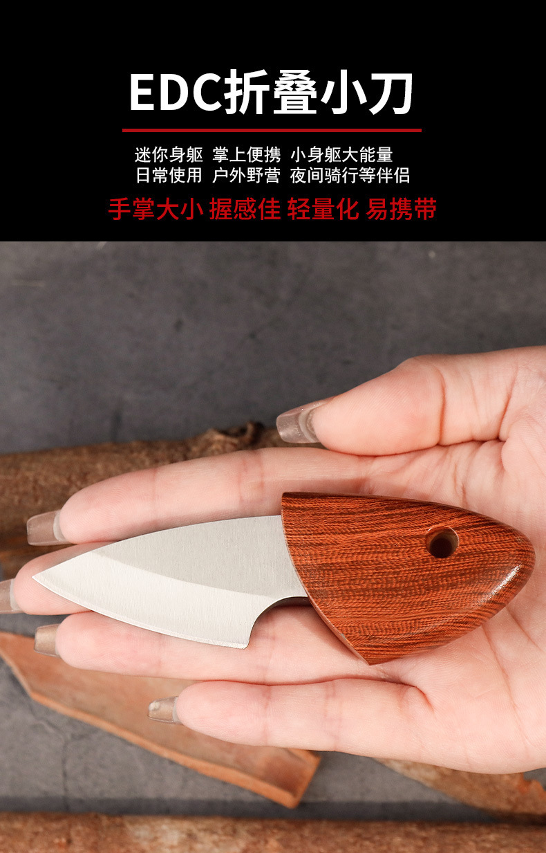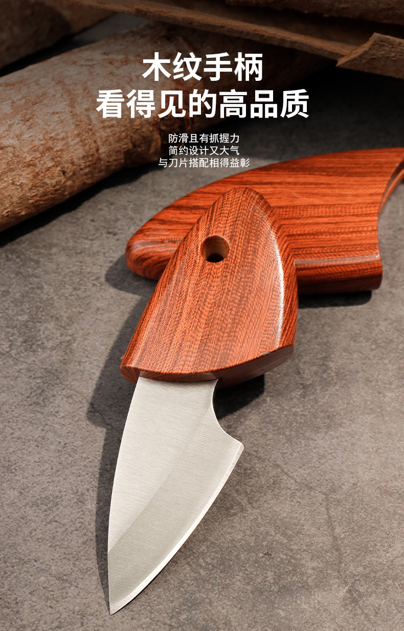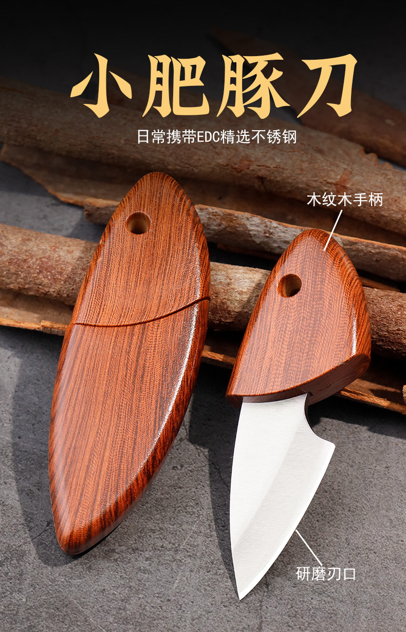 小肥豚小刀迷你口袋刀便携木鱼刀木纹小刀户外便携短刀厨房水果刀