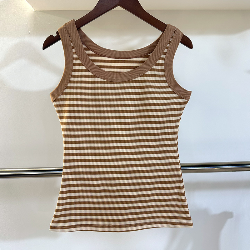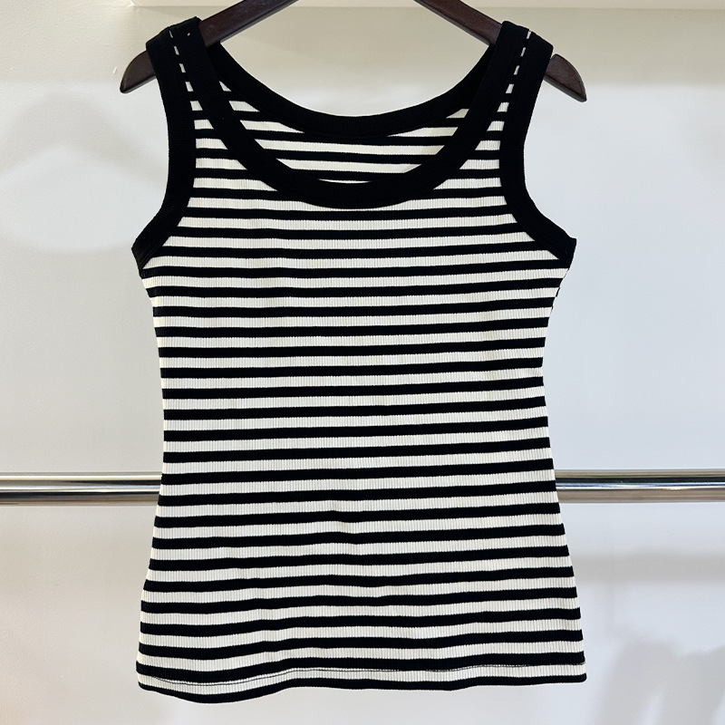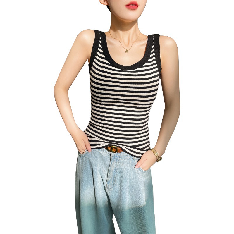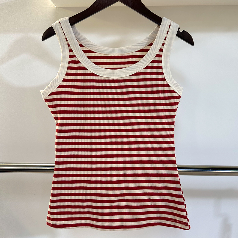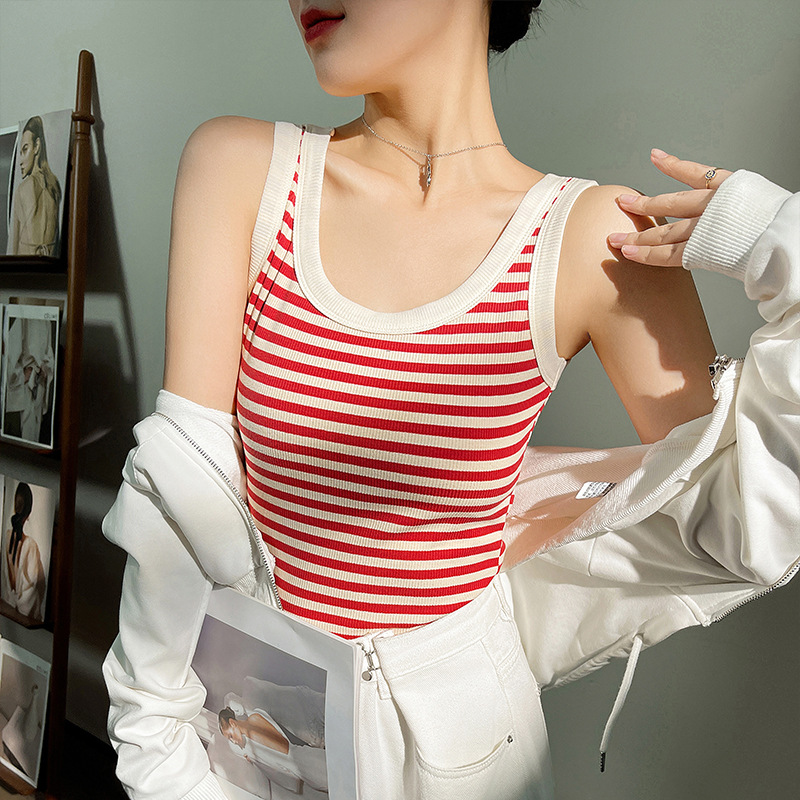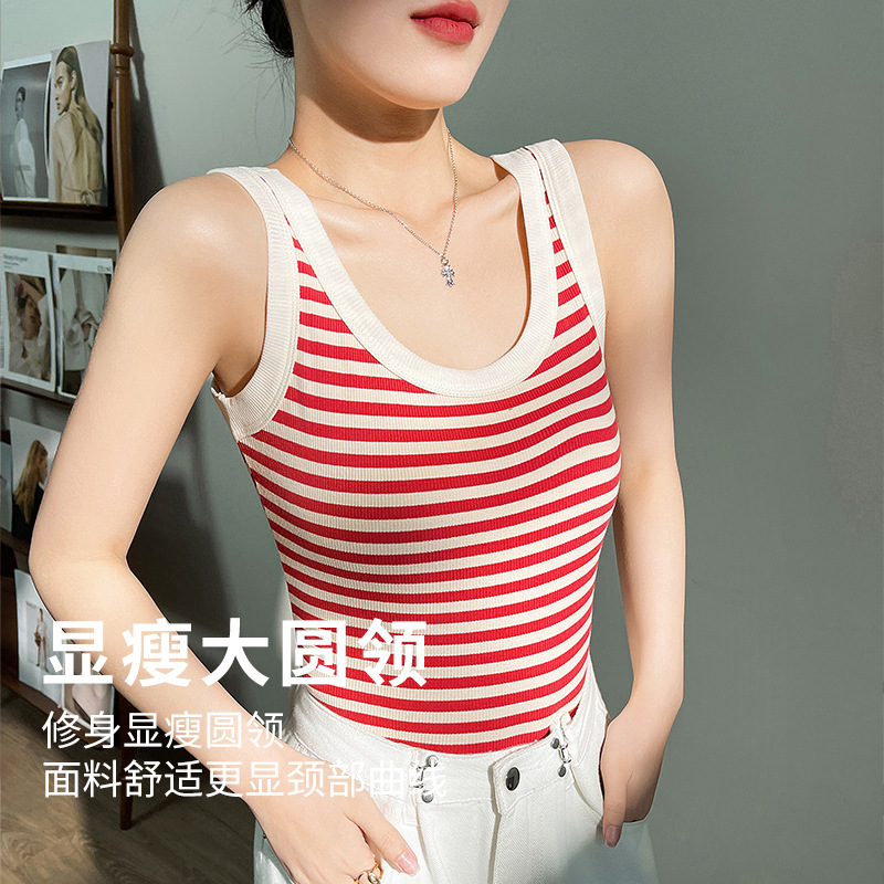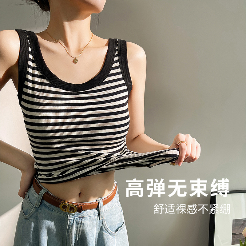 纯棉经典条纹背心内搭女上衣夏季遮副乳宽肩带无袖外穿打底吊带衫