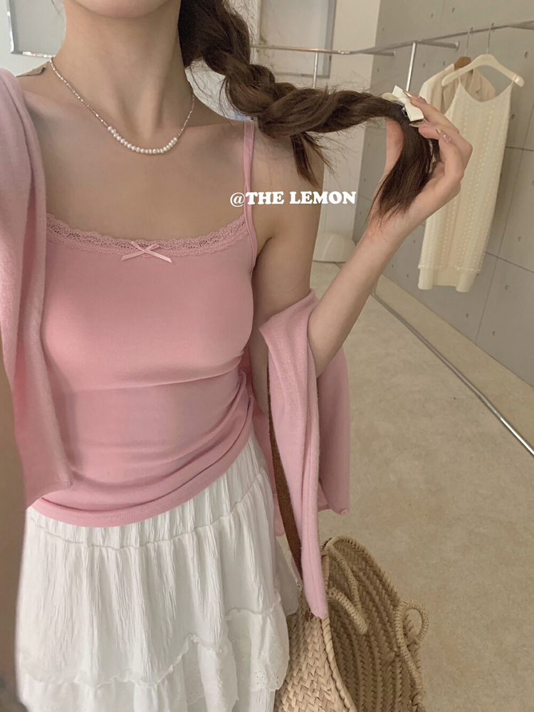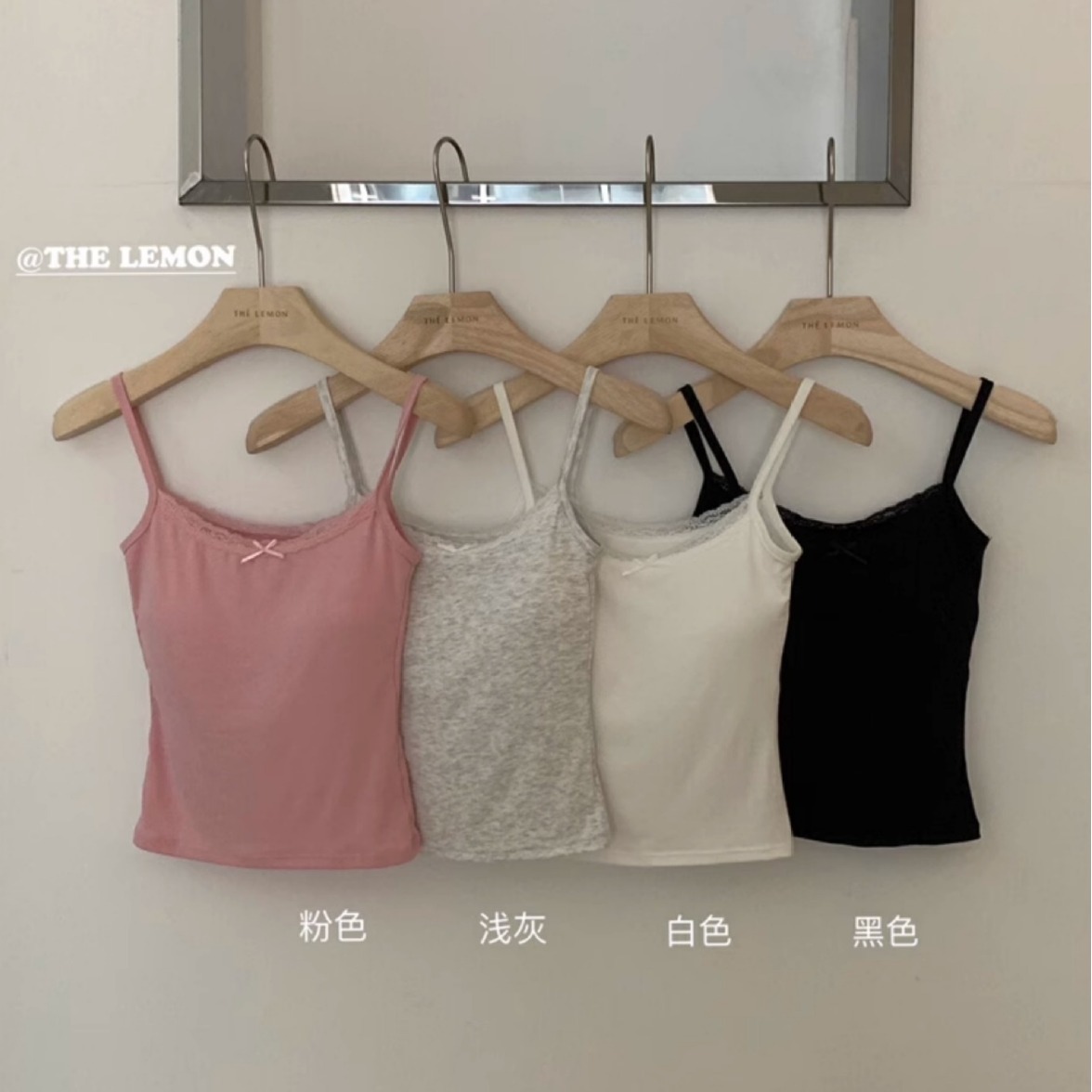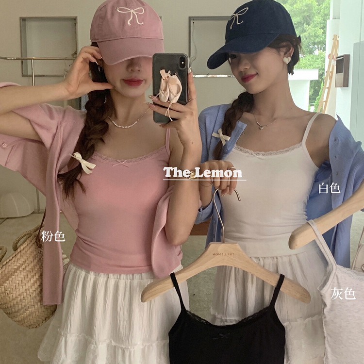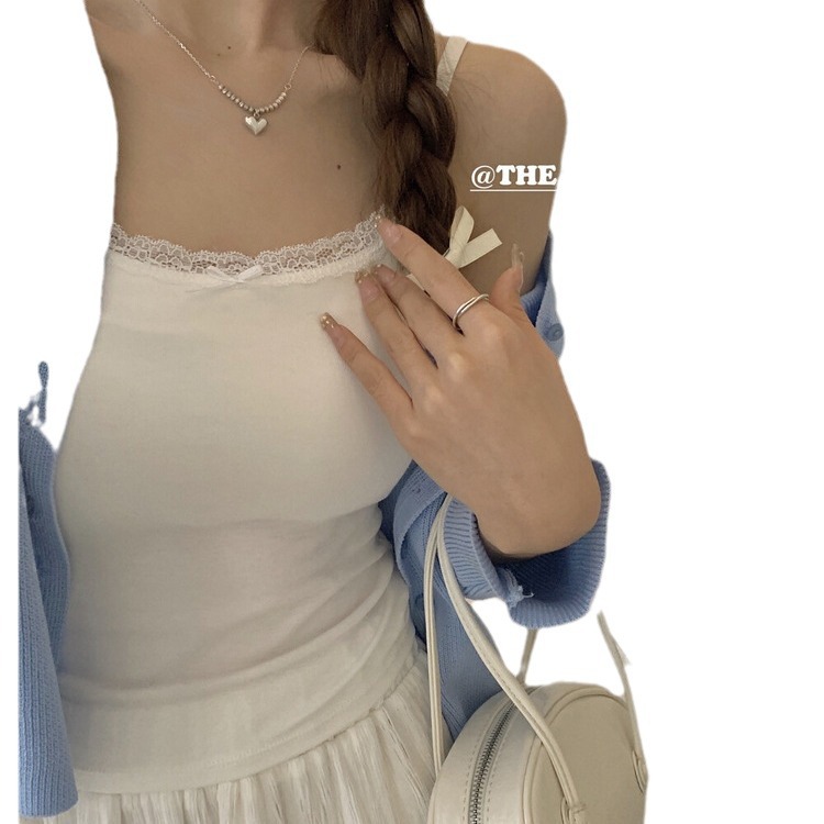 甜美蕾丝纯欲吊带背心夏季内搭蝴蝶结带胸垫舒适打底外穿上衣少女