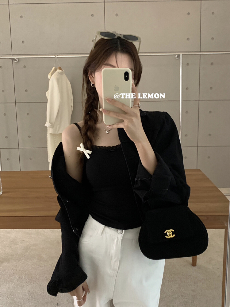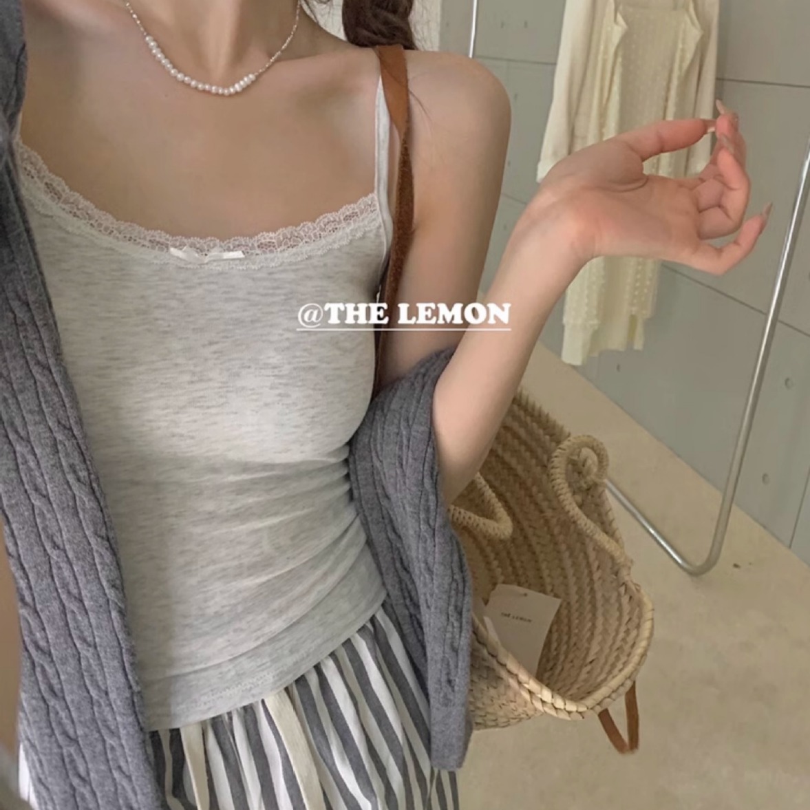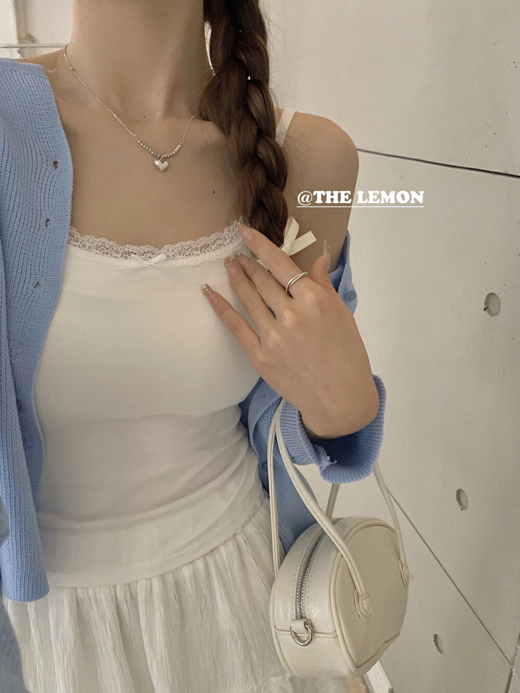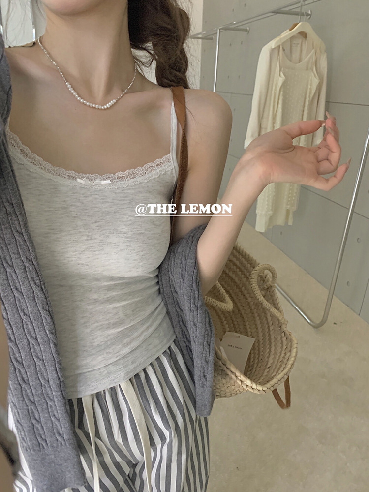 甜美蕾丝纯欲吊带背心夏季内搭蝴蝶结带胸垫舒适打底外穿上衣少女